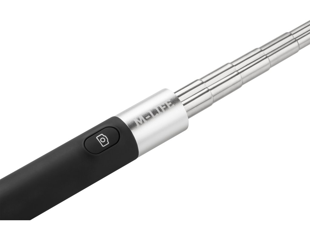 Selfie palica M-Life je obvezna oprema, če rad/a fotografiraš in želiš biti v trendu. Monopod je združljiv z vsakim pametnim telefonom, ki je opremljen z operacijskimi sistemi Android 4.2 in iOS 5.0 ali njihovimi novejšimi različicami. Uporaba selfie palice je zelo preprosta! Telefon povežeš z napravo preko 3,5 mm jack priključka, fotografijo pa posnameš s pritiskom na en gumb, ki se nahaja na ročaju. Monopod ima nosilec z razponom od 50 do 80 mm, ki ga je mogoče obrniti za 270°. Poleg tega zapora nosilca zagotavlja stabilnost in varnost tvojega pametnega telefona.