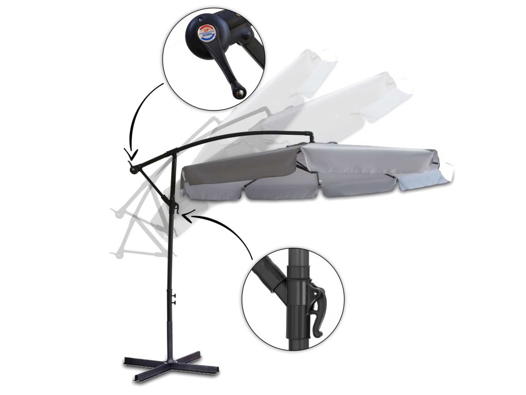 Možnost poljubne ureditve dežnika:- višina + kot nagibaV zloženem stanju zavzame malo prostora
