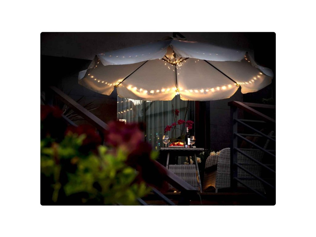 - 8*osvetlitev, prikazana na fotografijah, ni del dežnika