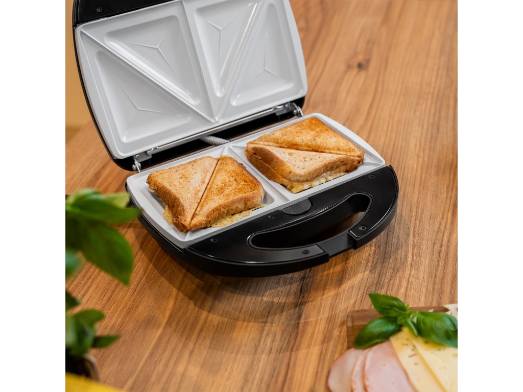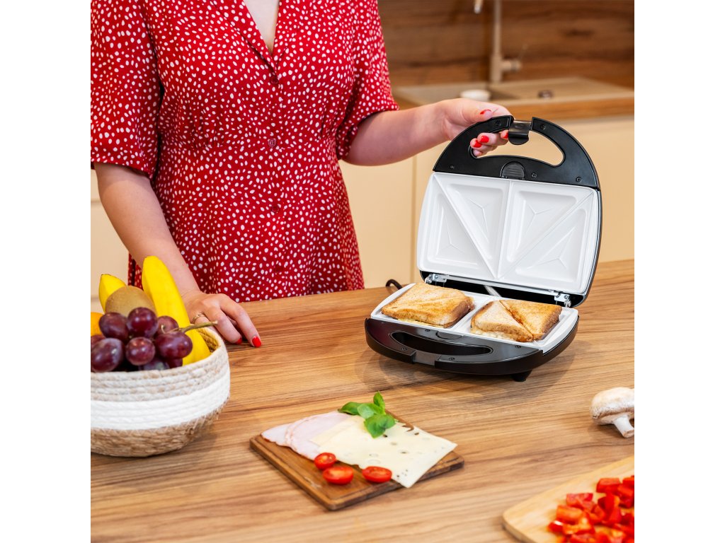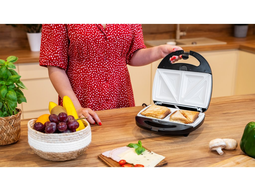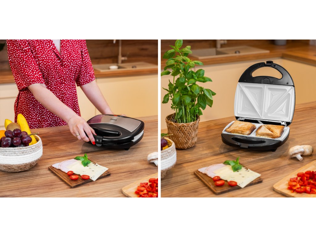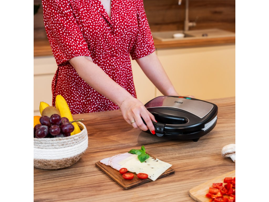 Udobno uporabo naprave omogoča ročaj, ki se ne segreva, in indikatorji, ki poka že, da je naprava povezana z napajanjem in pripravljena za uporabo. Poleg tega je opekač Teesa 3v1 opremljen s protizdrsno osnovo in zaščito pred pregrevanjem, da vam zagotovi maksimalno varnost. Pokrov opekača je izdelan iz nerjavečega jekla, zato je ne le izjemno trden, temveč zaradi njega naprava popolnoma ustreza dizajnu vaše kuhinje. Prednost opekača je, da ga je mogoče shranjevati v pokončnem položaju, tako da ne glede na velikost prostora mu boste zagotovo našli mesto.