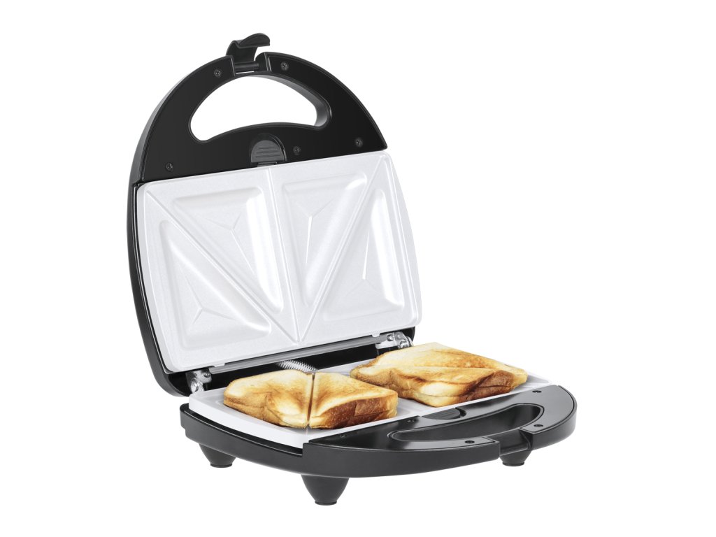 Želite pripraviti okusne prigrizke za svoje goste Ali pa preprosto ne potrebujete običajnega opekača več Zahvaljujoč zamenljivim vložkom za žar, peko vafljev in sendvičev, TSA3221 nadomesti tri naprave z eno. Opekač ima maksimalno moč 800 W, kar zagotavlja zelo hitro segrevanje, in s tem tudi pripravo hrane. Uporaba nelepljivih keramičnih plošč poleg tega zagotavlja izjemno enostavno čiščenje.