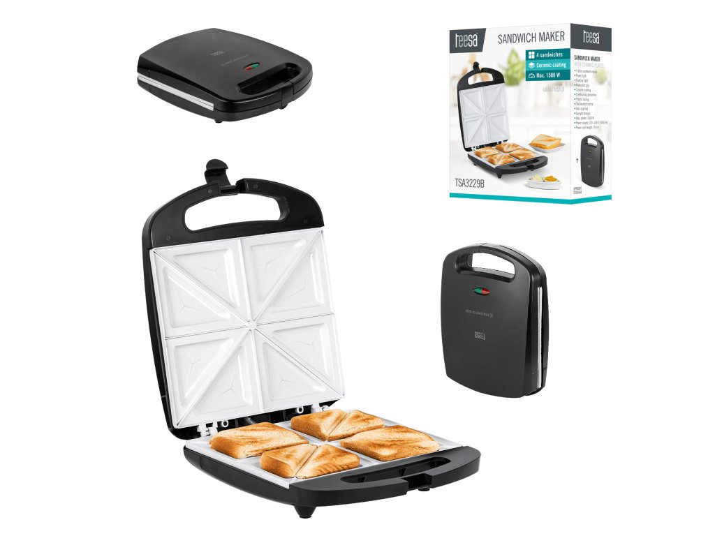 Želite, da bo kruh vedno hrustljav? Ali morda samo želite popestriti pripravljene obroke? Preizkusite opekač Teesa TSA3229 že danes in nikoli več ne boste želeli nazaj k klasičnim sendvičem! Naprava omogoča pripravo štirih toastov hkrati, visoka moč 1500 W pa poskrbi, da se neverjetno hitro segreje. To vam bo omogočilo, da v hipu pripravite zajtrk za vso družino. Nedvomno vam bo všeč tudi to, da je opekač opremljen z ne-pritegljivimi ploščami s keramično prevleko, zato ste lahko prepričani, da ne boste izgubljali časa z zamudnim čiščenjem.