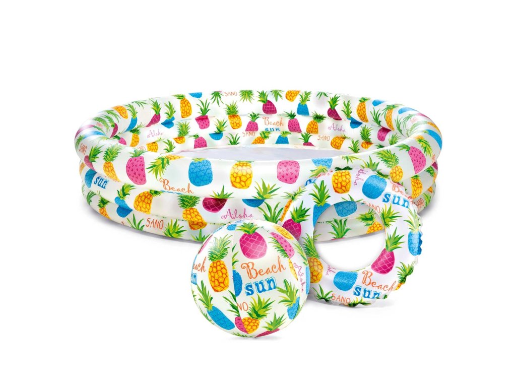 Set: napihljiv bazen Ananas 132 x 28 cm + žoga in obroč