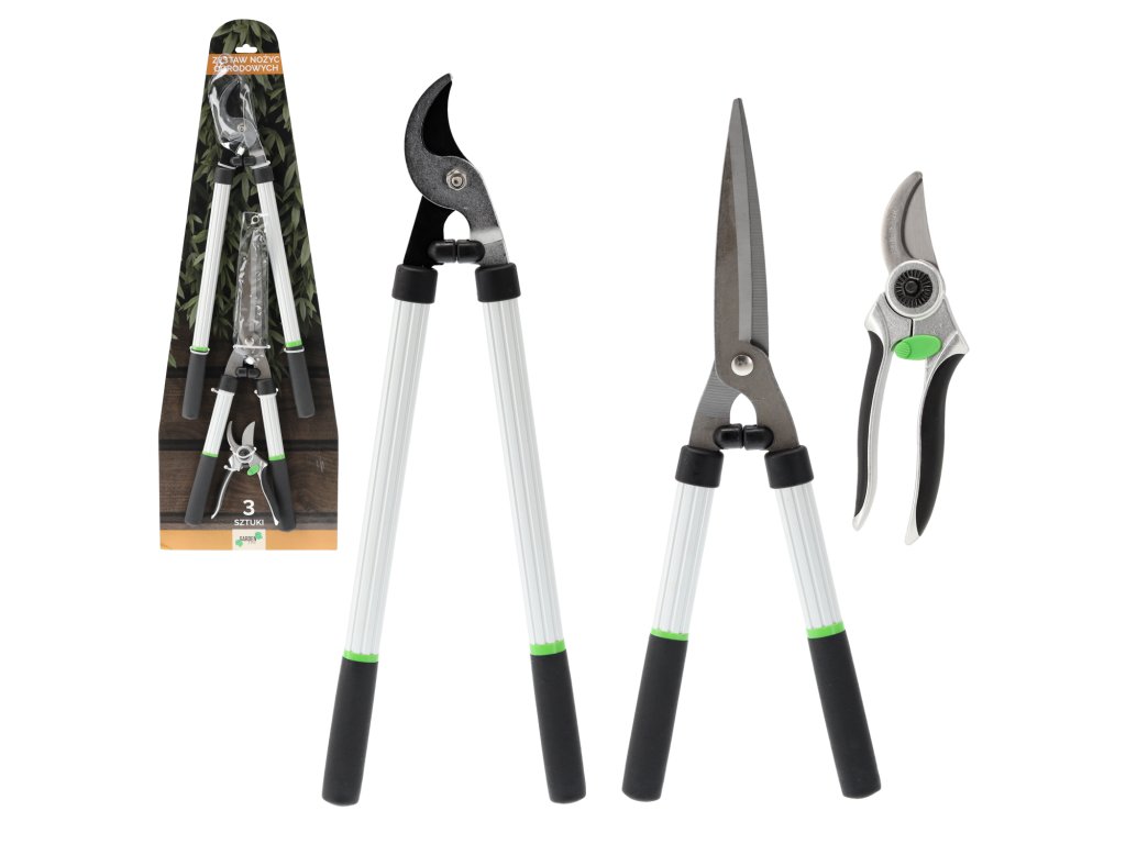Set 3 vrtnih škarij je idealno orodje za vsakogar, ki išče natančna in udobna orodja za obrezovanje rastlin. Set vključuje škarje z enim obratom, škarje za žive meje in obročaste škarje, ki se odlikujejo po trdni konstrukciji, ergonomskih ročajih in trajnih materialih, kar zagotavlja dolgotrajno uporabo in udobje pri delu.