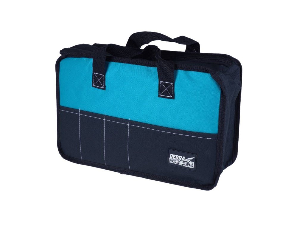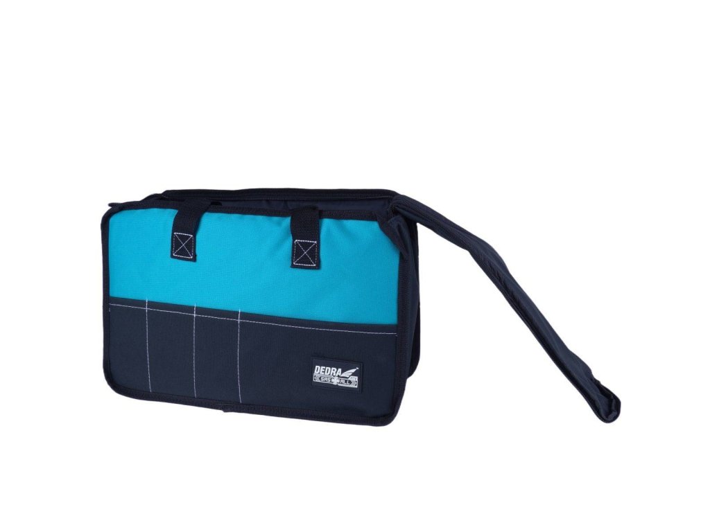 Kovček za orodje DED7001A v obliki kocke je idealen način za ohranjanje reda pri shranjevanju in prevozu orodja SAS+ALL. Kovček ima prostornino 18 litrov in je izdelan iz trpežnega, vodoodpornega poliestra 600D z dvema slojema, ki zagotavljata odpornost izdelka proti mehanskim poškodbam ter hkrati ščitita orodje med prevozom. Etui se zapira z zadrgo in je opremljen z dvema trakovoma/sponkama.