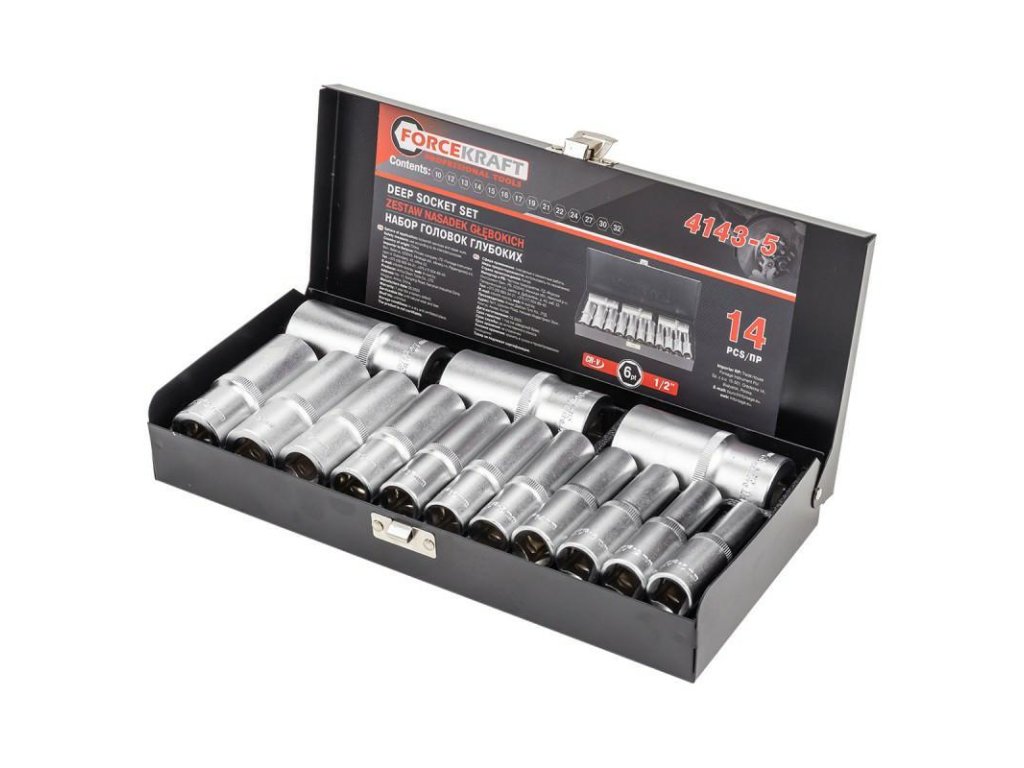 Set globokih nastavkov 1/2" 11-30mm 6-krakih 14 kosov s kovčkom