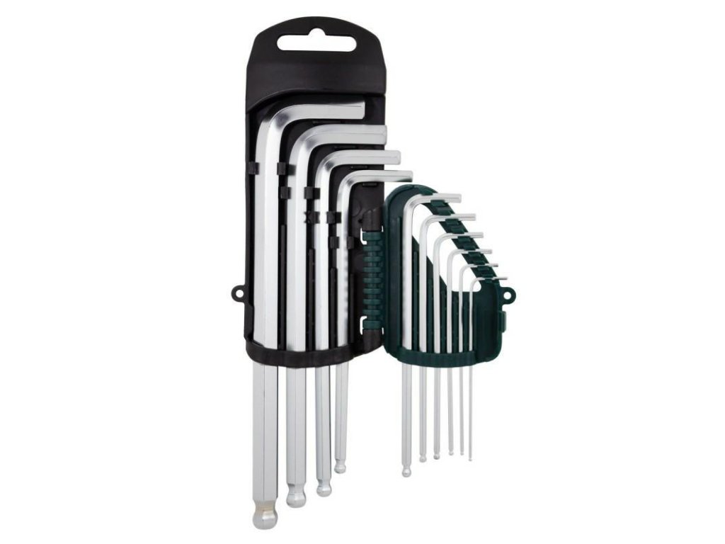 Komplet imbusnih ključev,žogasti konci so namenjeni predvsem za privijanje in odpenjanje natančnih in majhnih šesterokotnih vtičev in matice