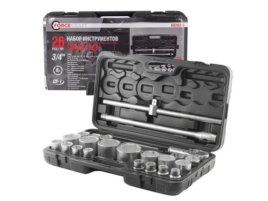 - Nastavitve 6-kotne 3/4" - 17 kosov.: 17 mm, 19 mm, 21 mm, 22 mm, 24 mm, 27 mm, 30 mm, 32 mm, 33 mm, 34 mm, 35 mm, 36 mm,(36 mm - 12-kotne), 38 mm, 41 mm, 46 mm, 50 mm