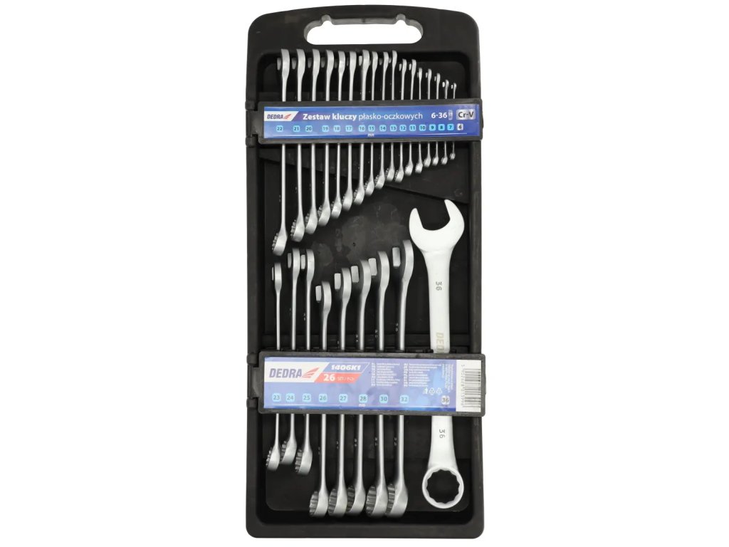- Ploščati ključi: 6, 7, 8, 9, 10, 11, 12, 13, 14, 15, 16, 17, 18, 19, 20, 21, 22, 23, 24, 25, 26, 27, 28, 30, 32, 36 mm