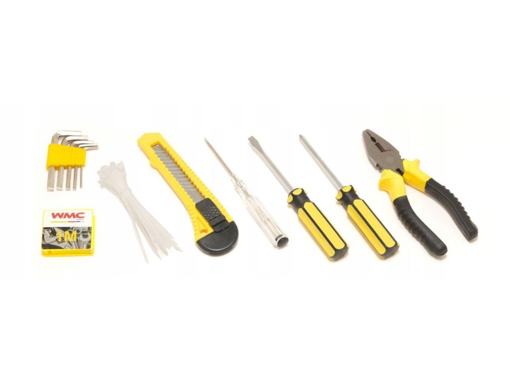 Funkcionalen niz orodja, ki vsebuje najbolj uporabna orodja, nujna v vsakem gospodinjstvu ali delavnici.