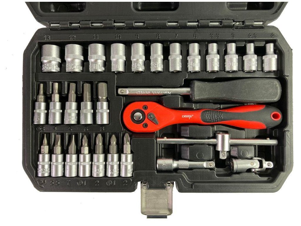 Komplet nastavnih ključev 1/4" je sestavljen iz 29 elementov, izdelanih iz visoko kakovostnega krom-vanadijastega jekla.
