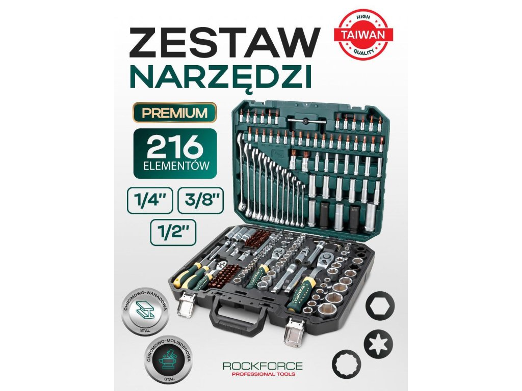 Set orodja 216 kosov 1/4" 3/8" 1/2"