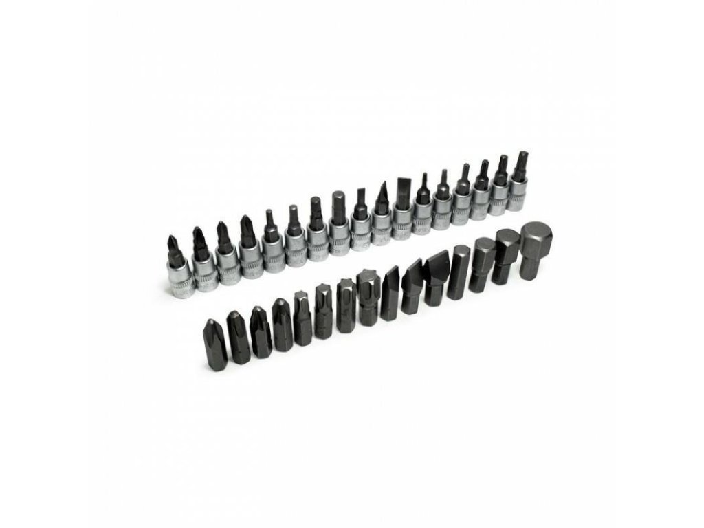 - Nastavki bitov - 15 delov: SL 8, 10, 12; PH 3, 4; PZ 3, 4; HEX 8, 10, 12, 14; T 40, 45, 50, 55