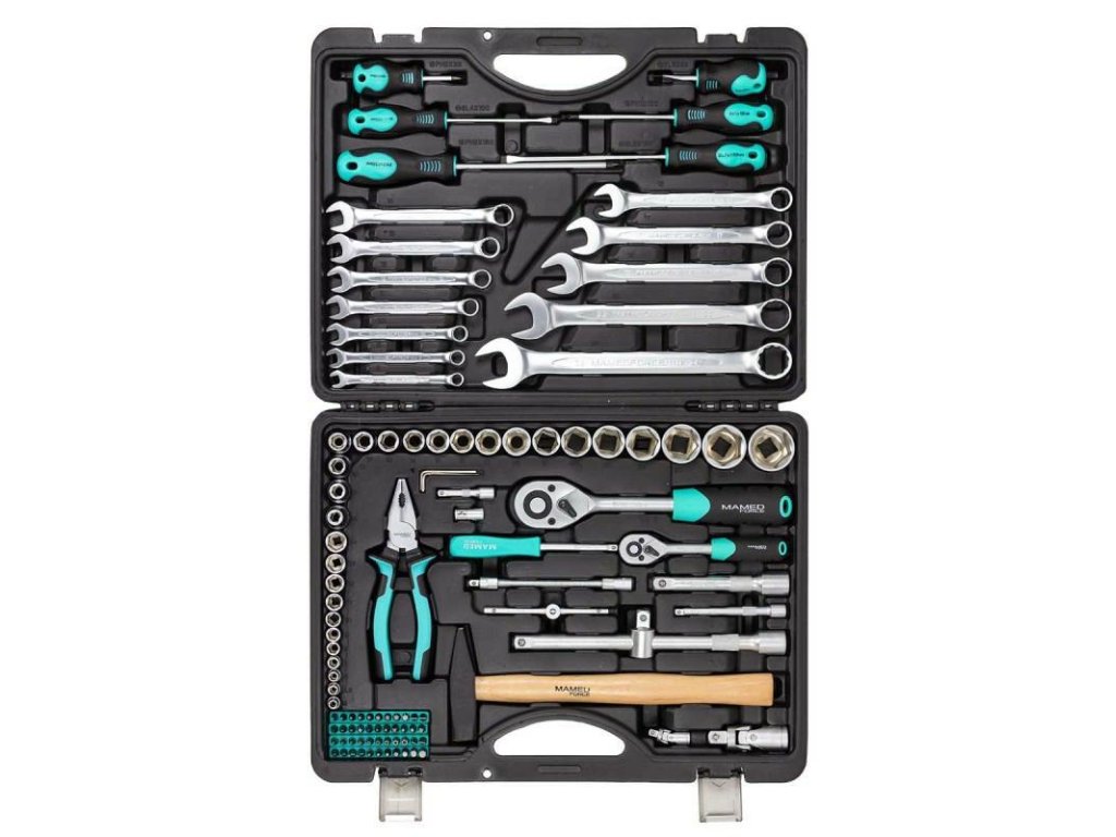 Material orodij je trajen in zanesljiv - krom-vanadijeva jeklina (CrV). Ta nabor orodij se ponaša z visoko kakovostjo in raznolikostjo orodij, kar ga dela idealno izbiro za profesionalne mehanike in entuziaste popravila avtomobilov.