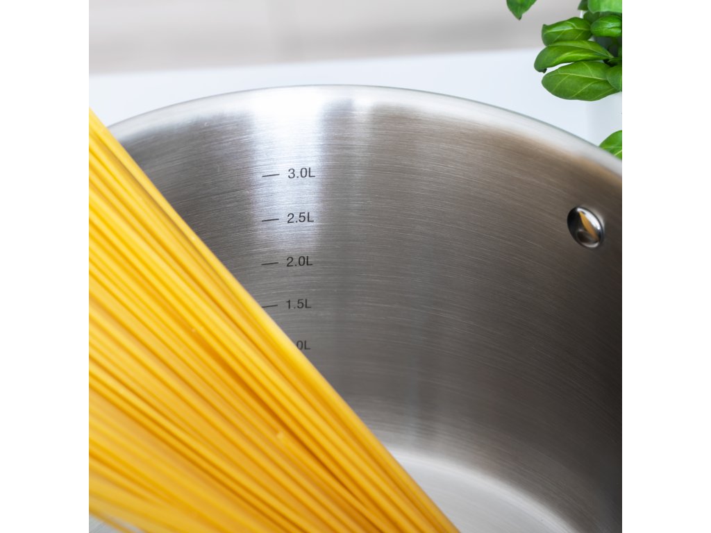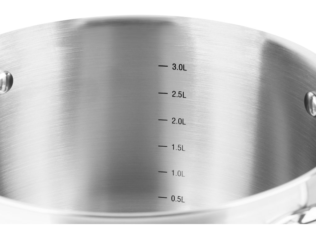 Jekleni lonci Teesa so opremljeni s praktično merilno lestvico. Merilna črta na notranji strani olajša merjenje ustreznih razmerij doda(nih) sestavin pri pripravi jedi.