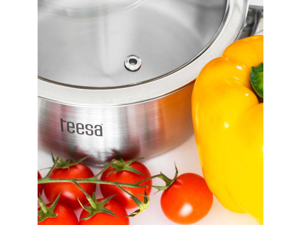 Večplastna struktura dna loncev Teesa odlično prevaja in akumulira toploto. Zaradi tega se lonec hitro segreje, dobro zadrži toploto in jo enakomerno razporedi po celotni posodi. Večplastno dno tudi varuje kuhane jedi pred prižiganjem ali prekuhavanjem.