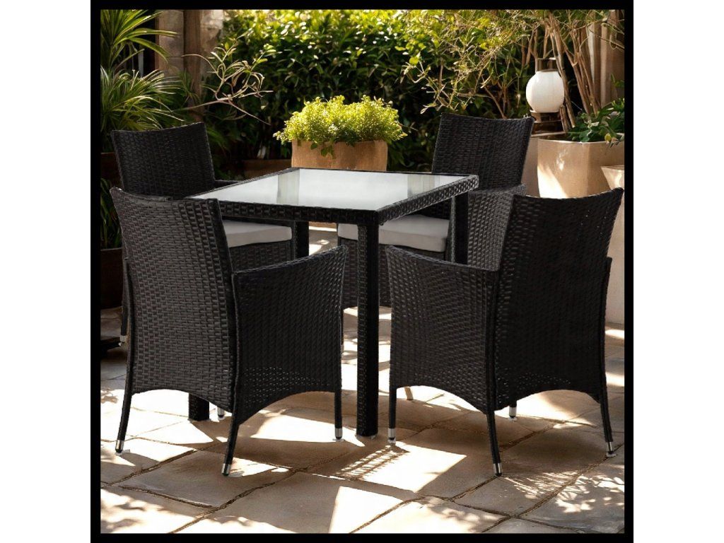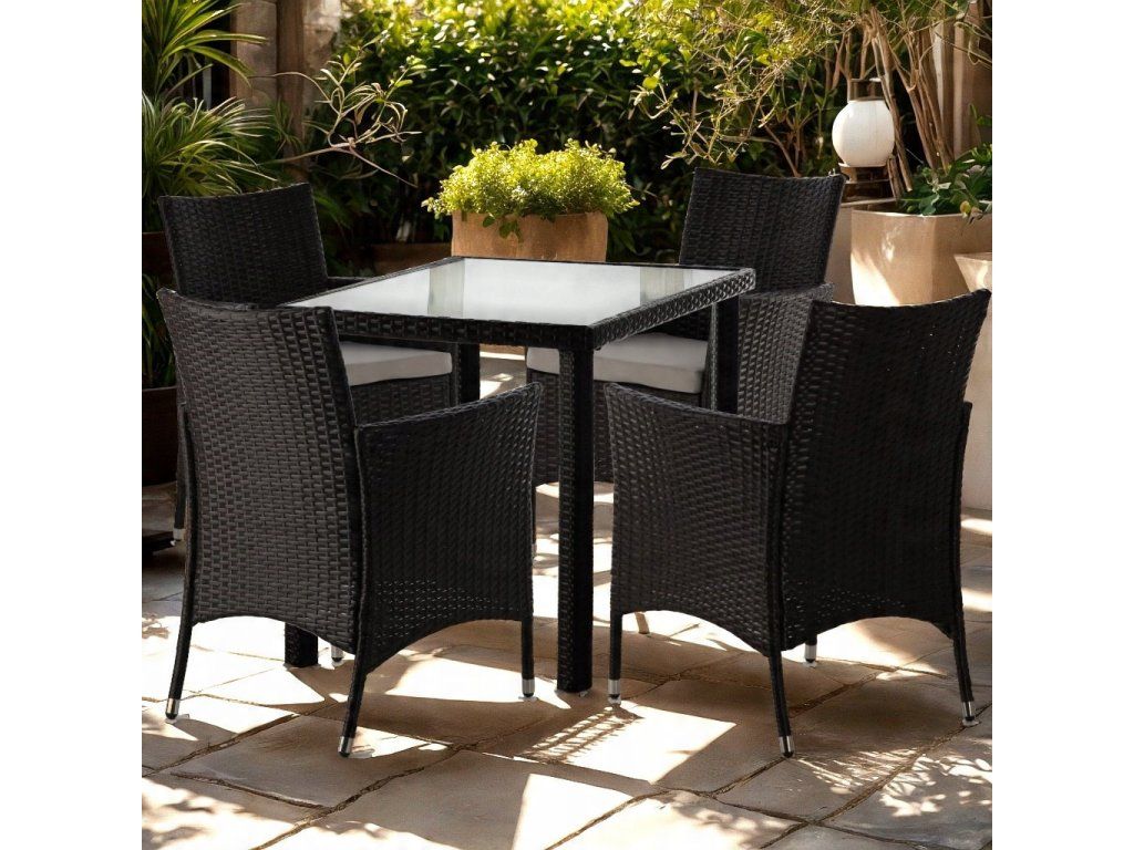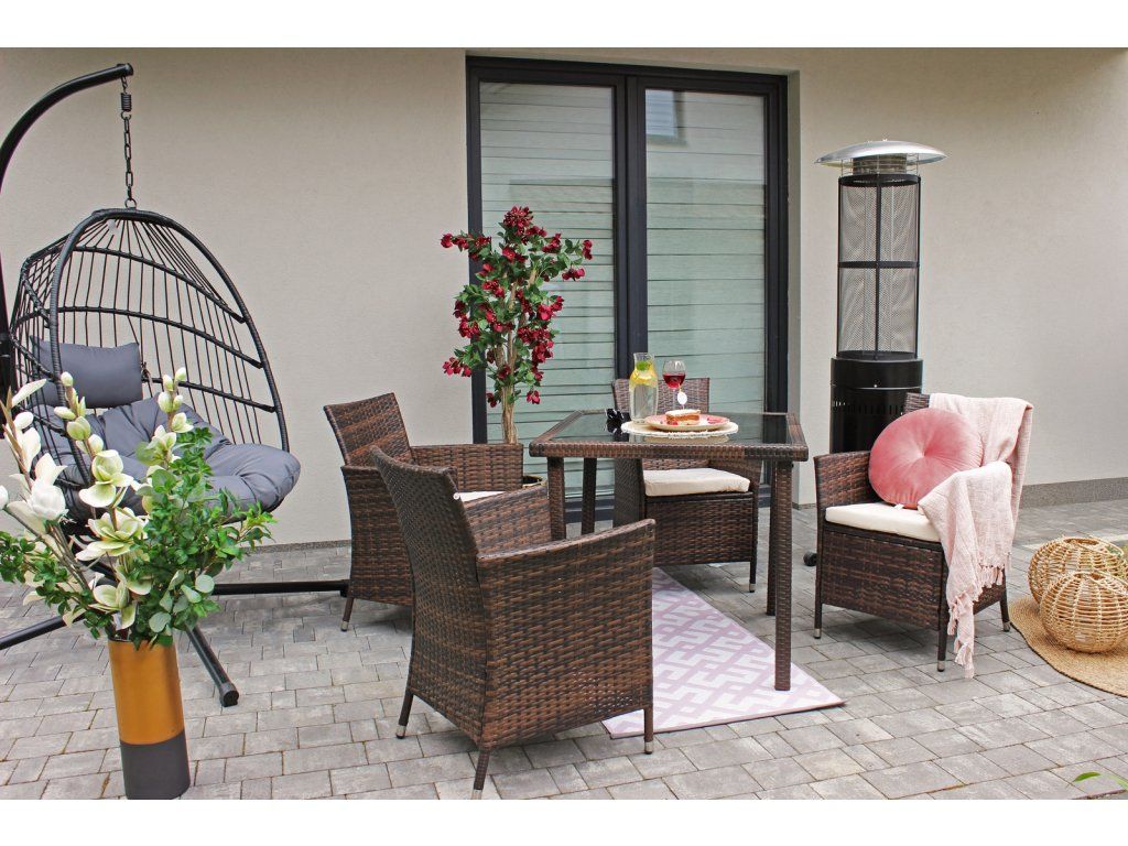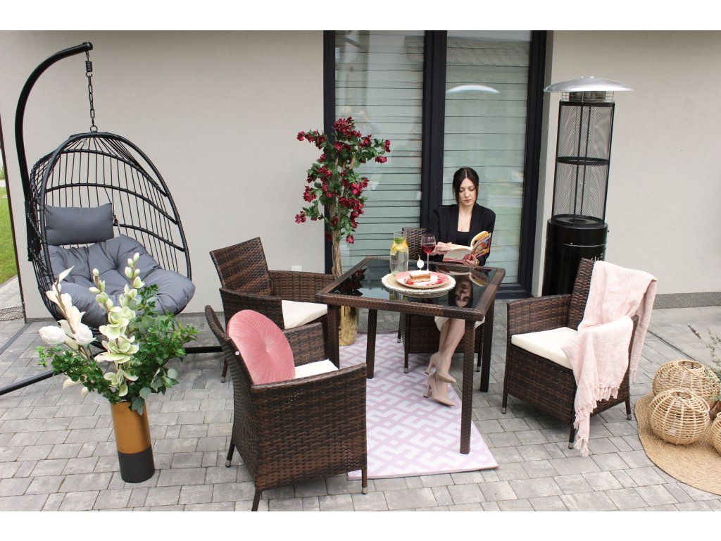 Svet rattanovega pohištva - konferenčna mizica + 4 stoličke - ima vsestransko uporabo in je prava okrasitev vrta, terase, zimskega vrta ali dnevne sobe. Udobne stoličke in eleganten meja spodbujajo k preživljanju časa v krogu družine ali prijateljev. Rattanova garnitura očara ne le s svojo elegantno podobo, ampak tudi z dolgo življenjsko dobo. Zelo udobne bež blazine iz poliestra se barvno odlično ujemajo s pohištvom. Komplet je primeren za vrt, balkon, teraso, dnevno sobo ali zimski vrt.