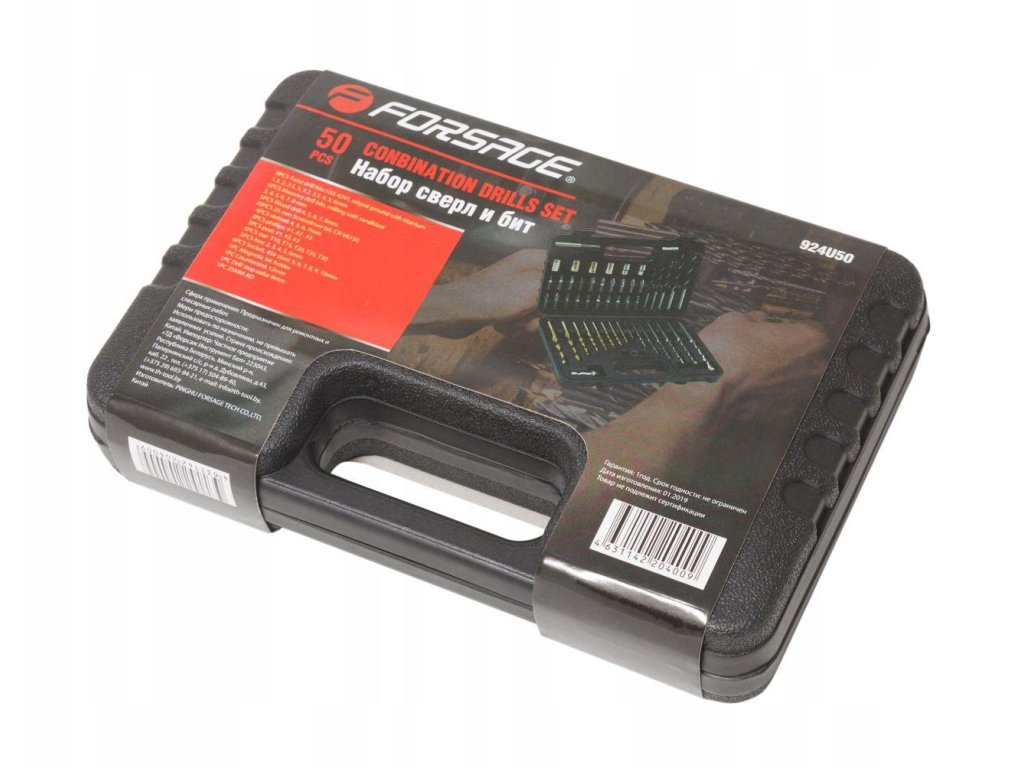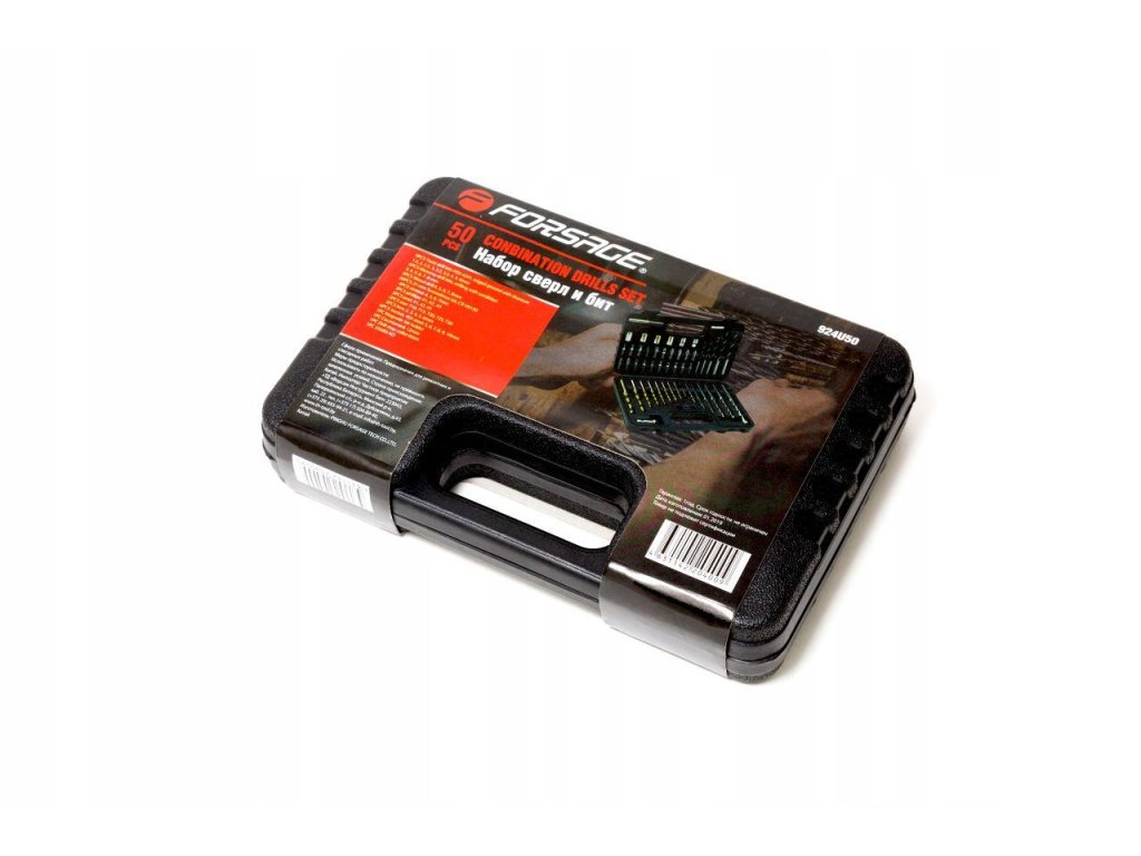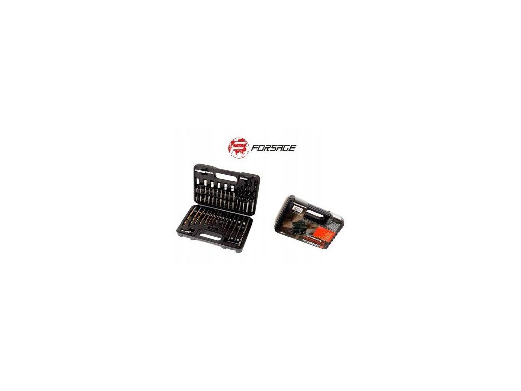 Komplet Forsage z navrtalniki, biti, pribori in drugim orodjem, koristno v vsakem gospodinjstvu, je izdelan iz zelo kakovostnega jekla. Navrtalniki so namenjeni različnim tipom materialov, kot so lito železo, železo, jeklo, les in plastika. Del kompleta so tudi adapterji za vijake s šestkotno glavo, biti.