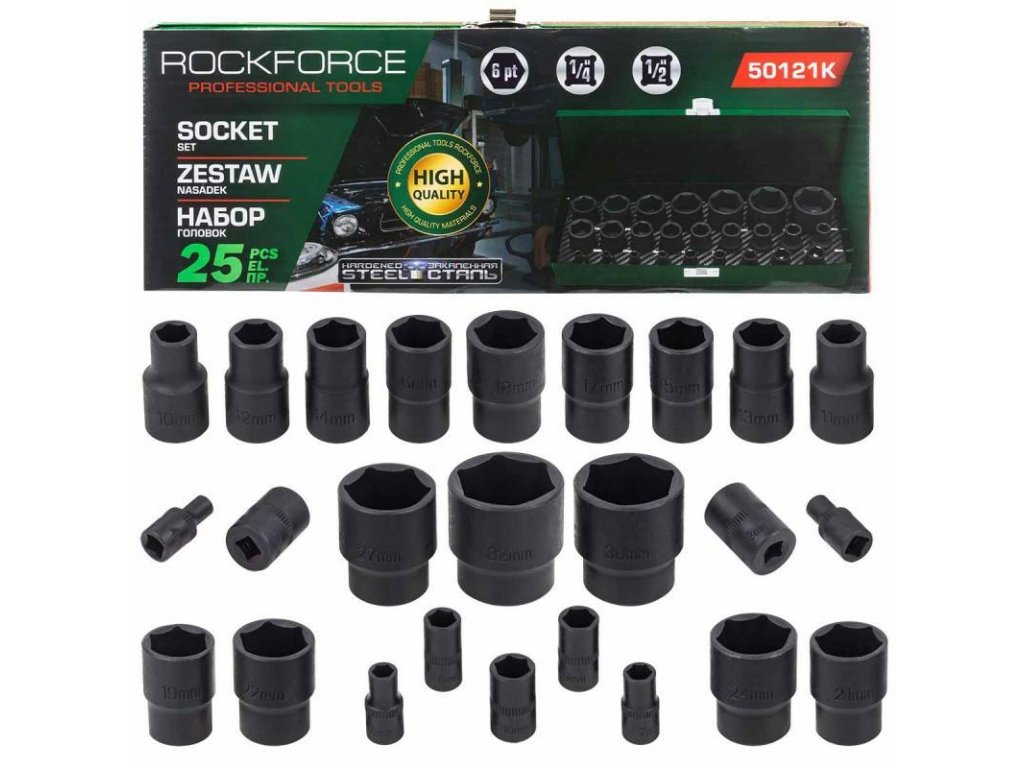 Set udarnih ključev 1/2" in 1/4" 4-32mm 6-ploščni 25 kosov v torbi