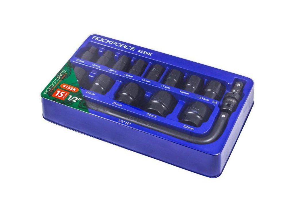 Komplet vsebuje 15 kosov nastavkov v velikostih za 1/2":