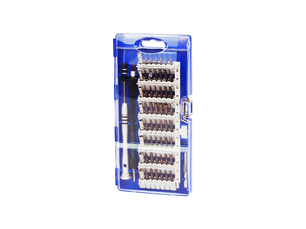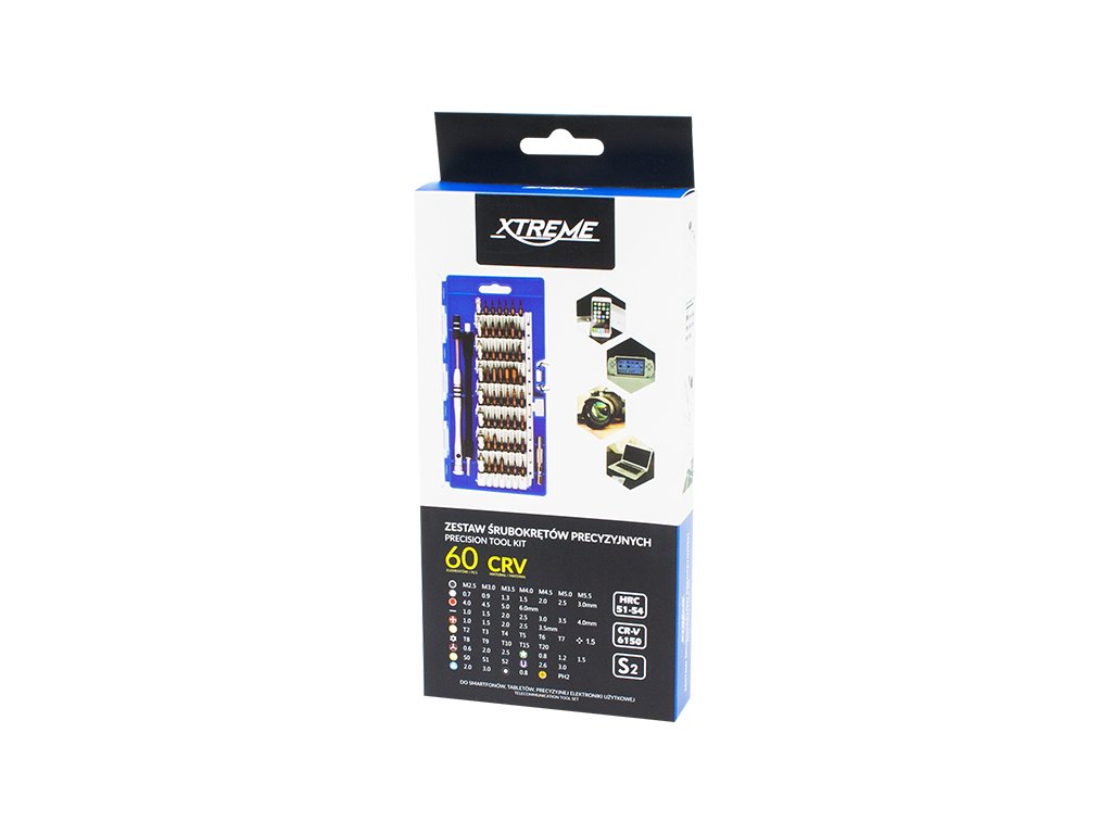Visokokakovosten, bogat komplet preciznih izvijačev, sestavljen iz kar 60 delov v praktični in priročni embalaži. V kompletu se nahaja med drugim ročaj z udobnim oprijemom ter 56 različnih vrst izvijačev s podaljškom. Nepogrešljiv komplet za različne vrste servisnih del.