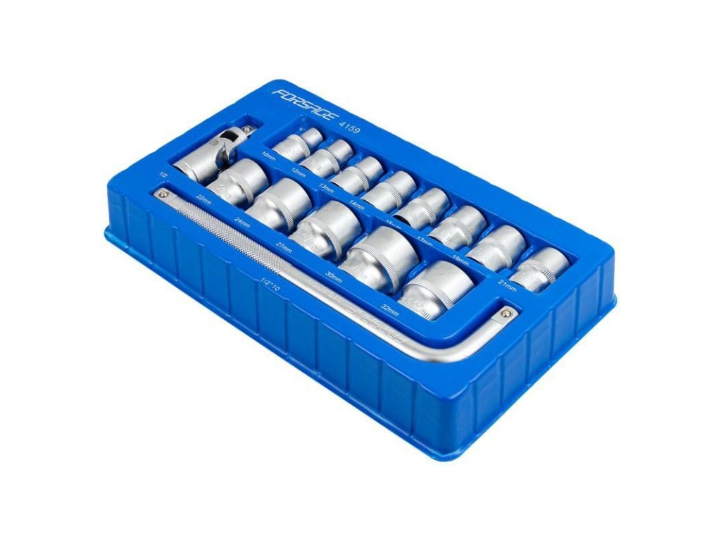 Komplet vsebuje 15 kosov nastavkov v velikostih za 1/2":