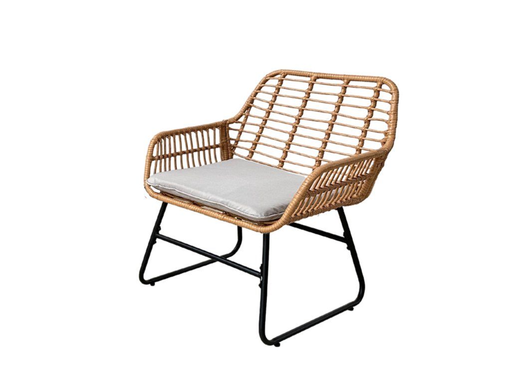 Stilni in funkcionalni komplet zunanjega pohištva, ki je idealen za teraso, vrt ali balkon. Trdna jeklena konstrukcija, eleganten ratan in udobni blazini zagotavljajo vzdržljivost in udobje pri uporabi. Steklena plošča mize dodaja eleganco in olajša vzdrževanje čistoče.
