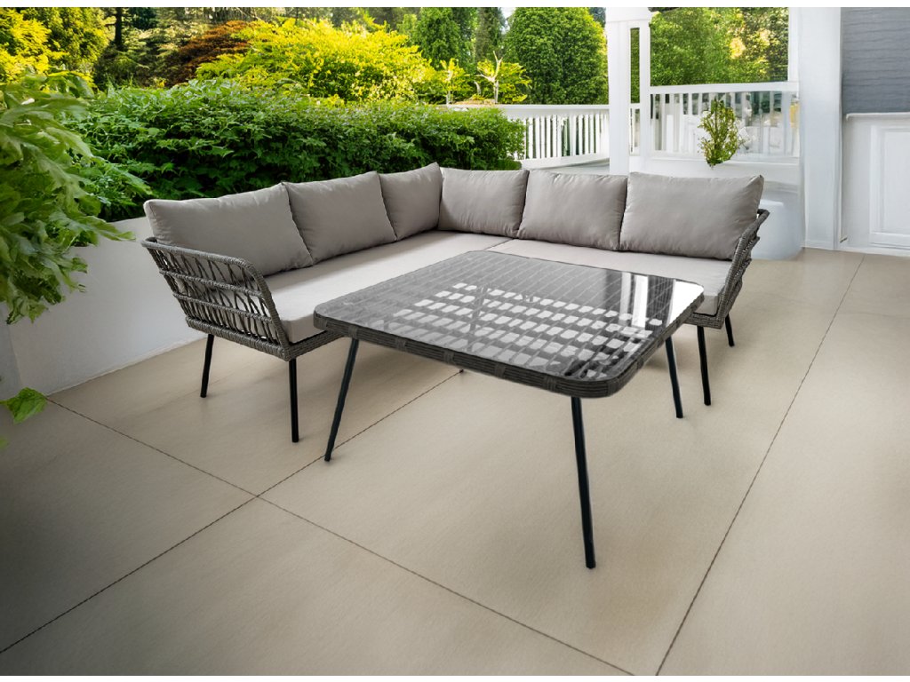 Moderen in funkcionalen komplet zunanjega pohištva, ki se popolnoma prilega terasi, vrtu ali sprostitvenemu prostoru. Izdelan iz visokokakovostnih materialov, zagotavlja trajnost, udobje in odpornost proti vremenskim razmeram. Slogovljen ratan v kombinaciji s udobnimi blazinami ustvarja popoln prostor za počitek.