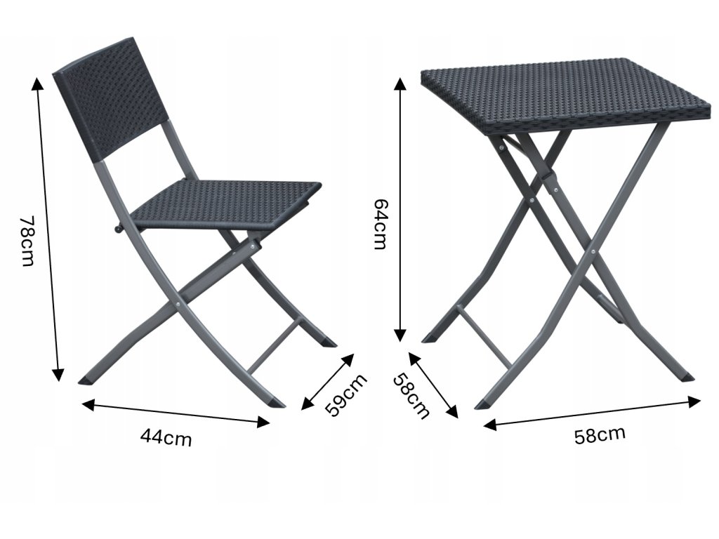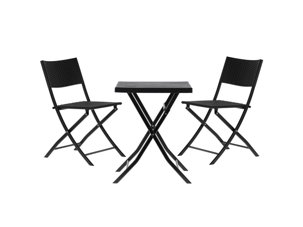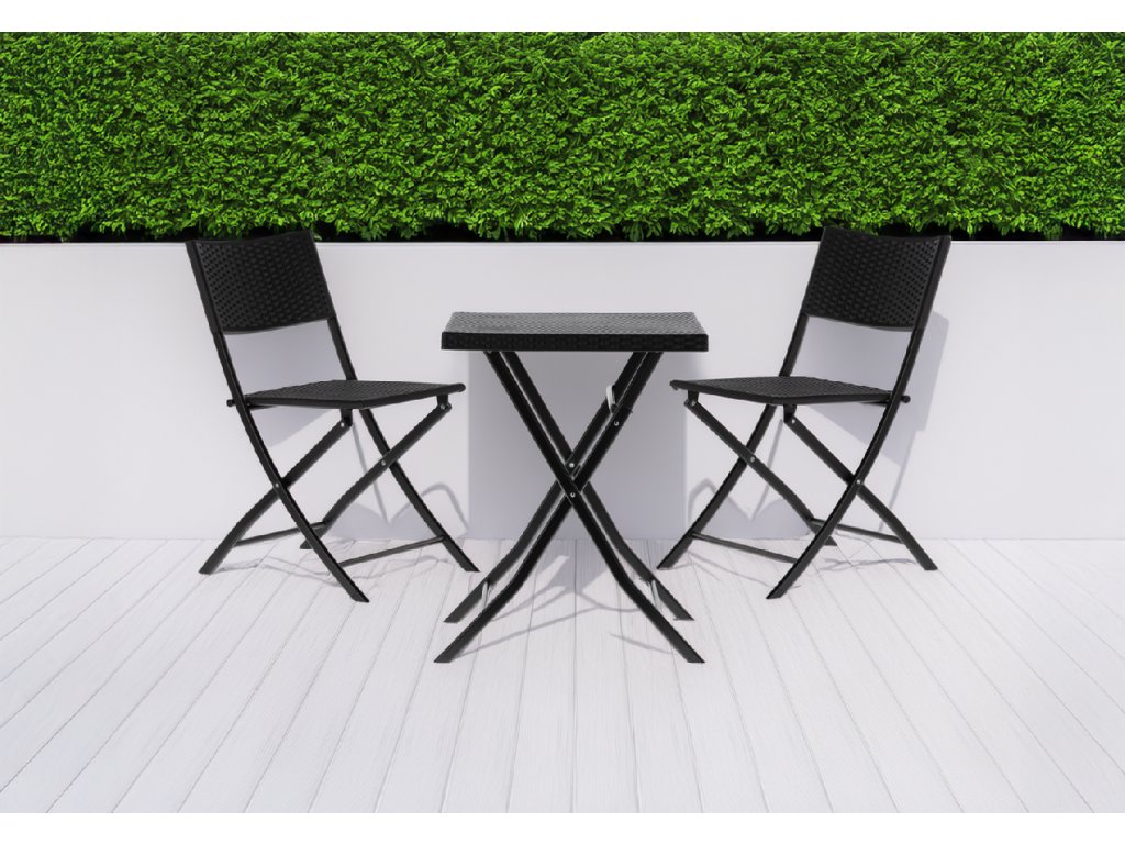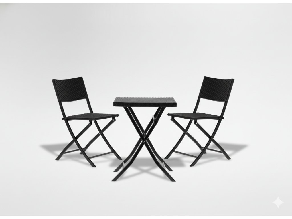 Zložljivo pohištvo iz polirattana je idealna rešitev za vrt, balkon, teraso ali zimski vrt. Pohištvo je odporna na vremenske spremembe, zelo stabilno kljub nizki teži in izjemno enostavno za čiščenje. Polirattan je trpežen material, odporen na vlago in umazanijo, kar zagotavlja dolgotrajno uporabo skozi mnoge leta. Set obsega mizo in dve stoli, ki jih je mogoče enostavno zložiti, kar prihrani prostor, ko niso v uporabi.