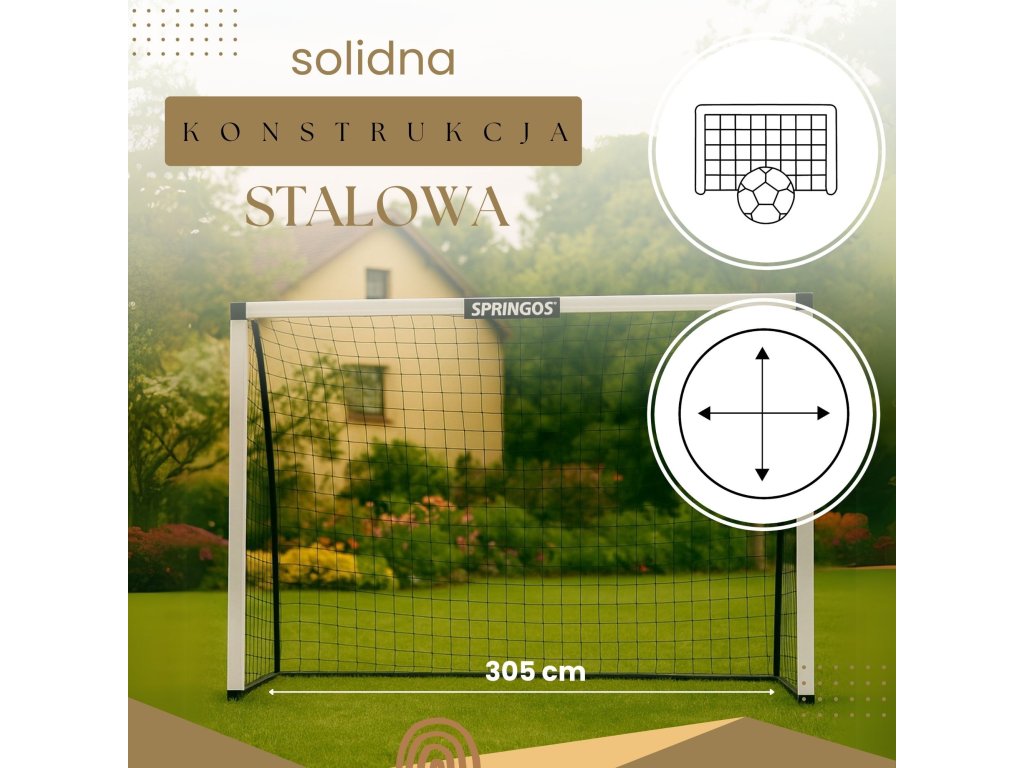 - Zunanja širina gola: 305 cm