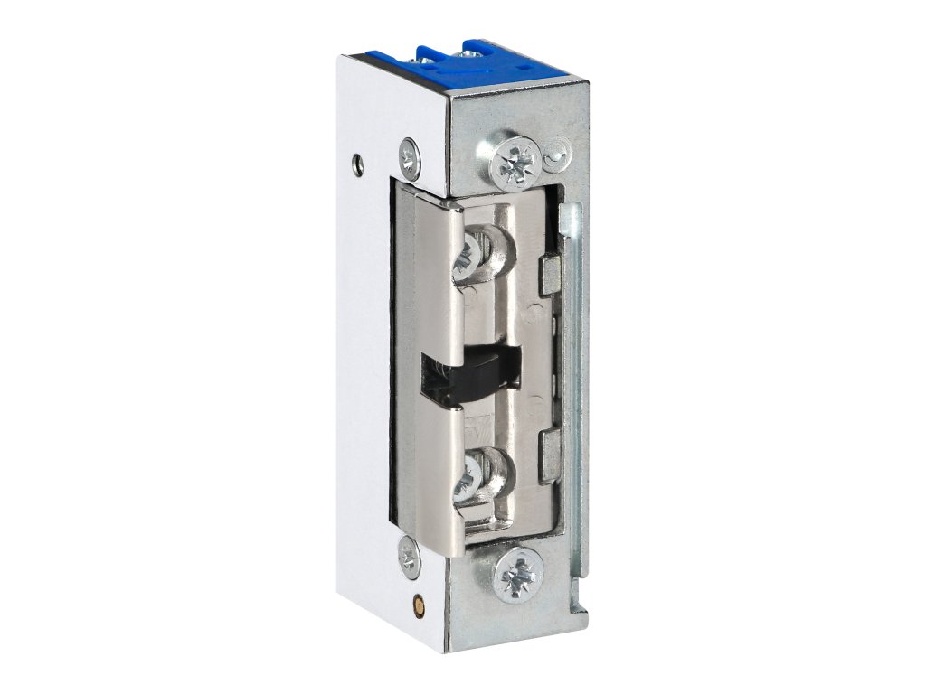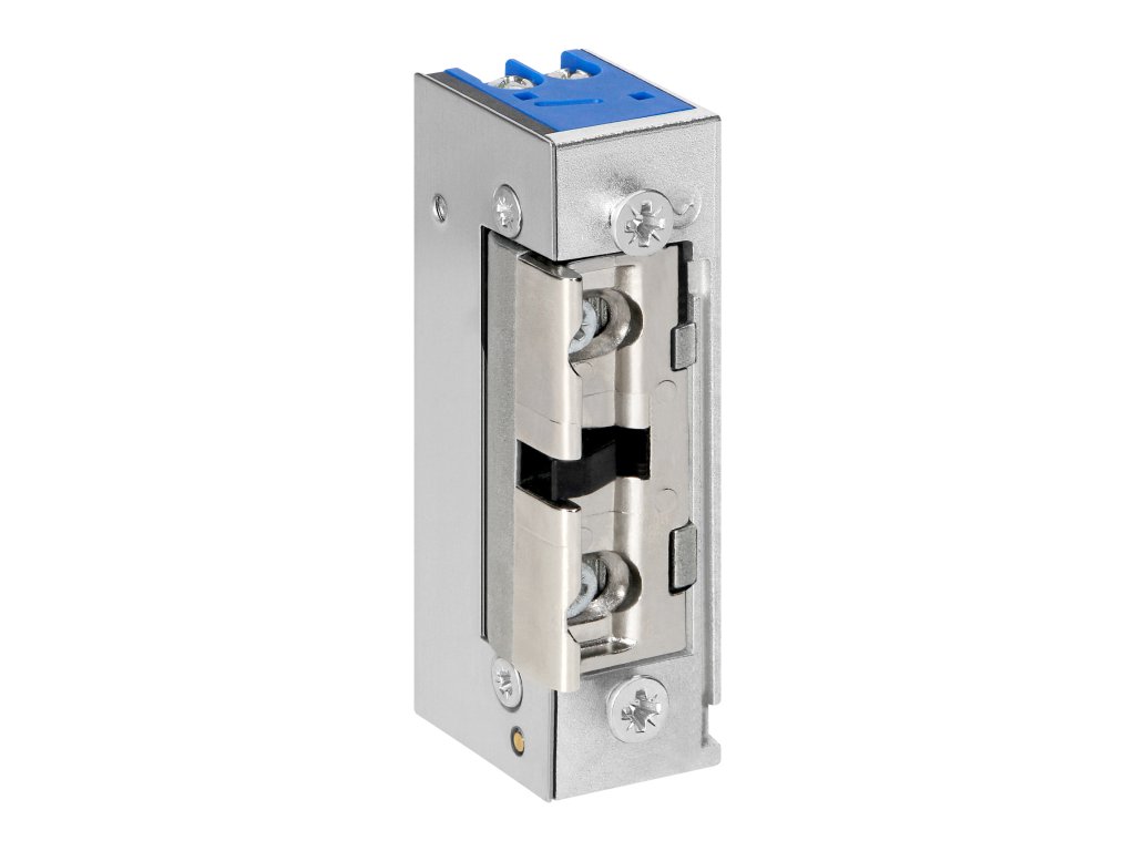 Simetrična električna ključavnica s spominom, prilagojena za obe smeri odpiranja vrat (desno/levo). Nastavljiva zapah omogoča prilagoditev električne ključavnice različnim vratom in okvirjem.Izdelek ima funkcijo spomina, ki omogoča, da napravo upravljamo s kratkim napetostnim impulzom. Ko impulz preneha, se ključavnica mehanično ohrani v odprtem stanju, dokler se vrata ne odprejo, in se samodejno zaklene, ko so vrata zaprta.