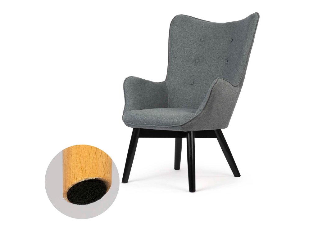 Bukovi nogi fotelja in pručke, obloženi s filcem, zaščitijo tla pred praskami.