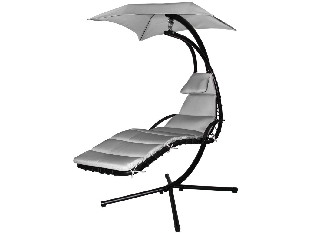 Sedež iz debelih mrežnih materialov zagotavlja izjemno udobje. Mehka blazina in streha, ki ščiti pred soncem, naredijo sprostitev na svežem zraku še prijetnejšo.