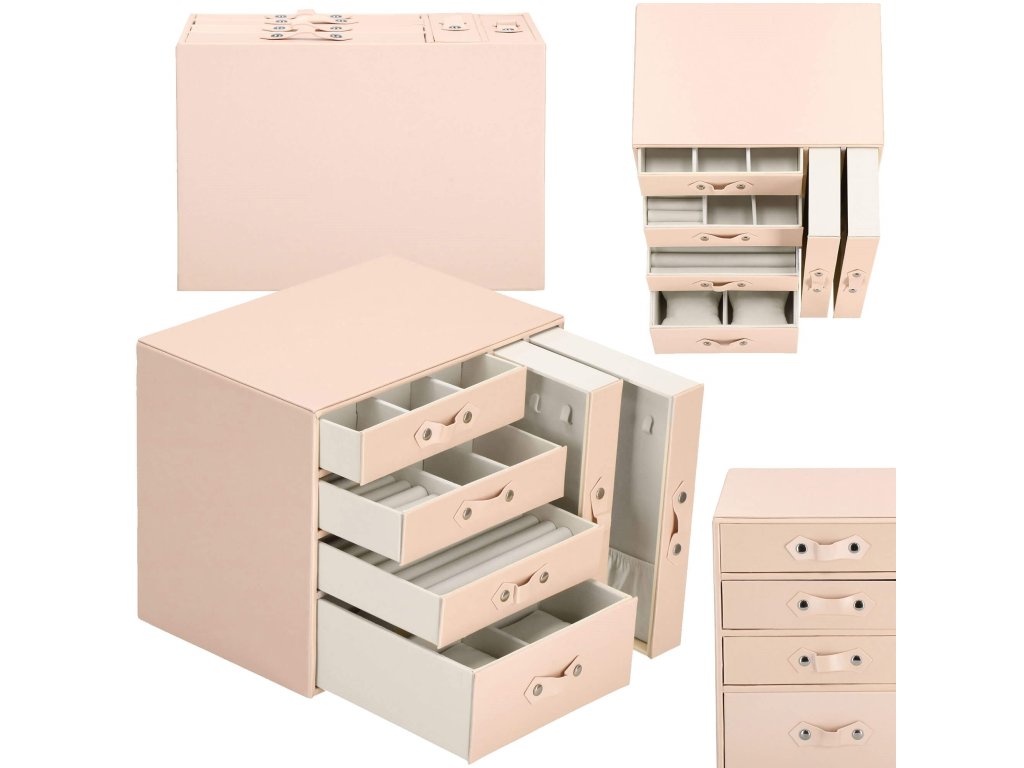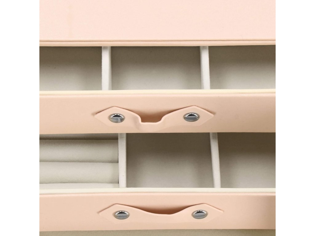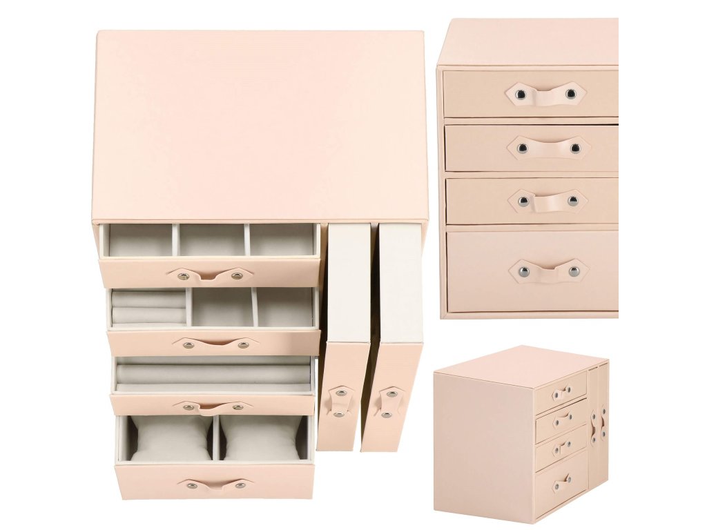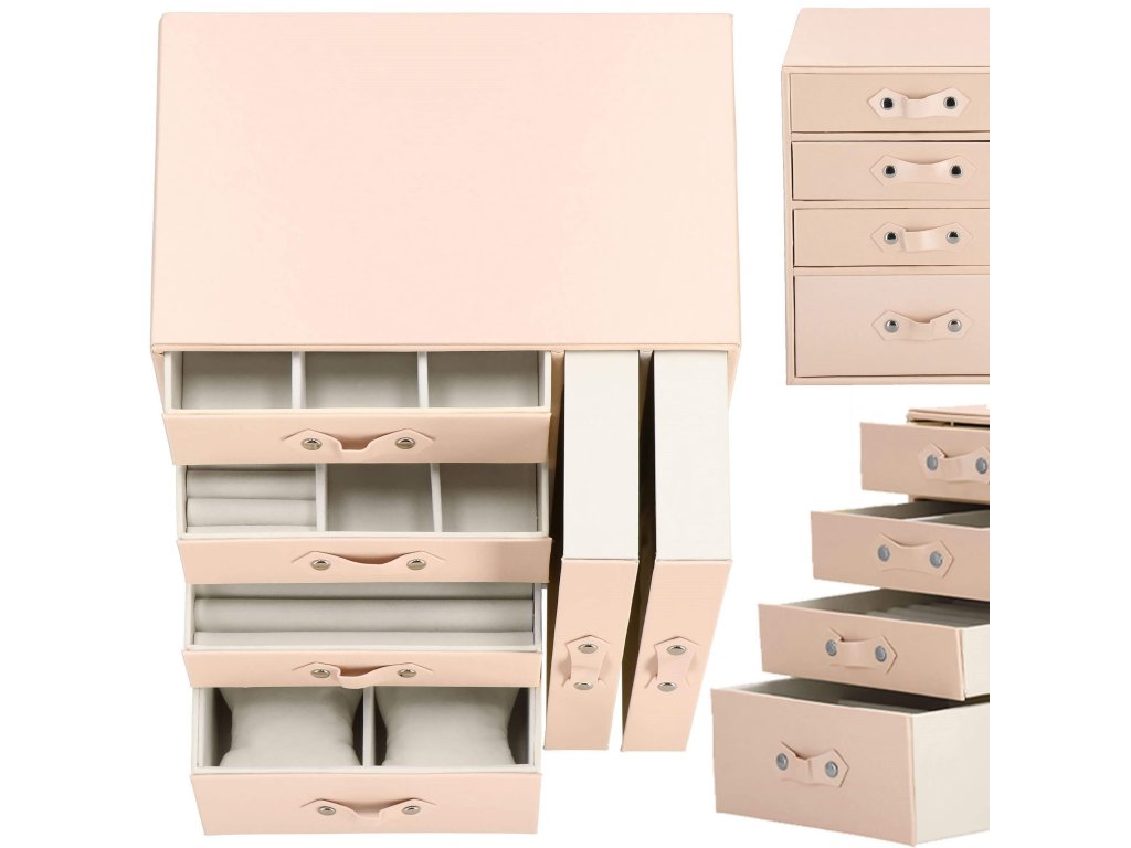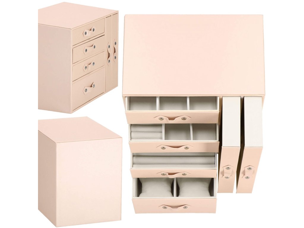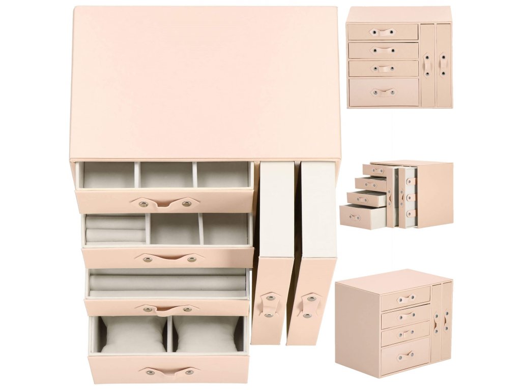 - 1 velika predal: 10 predelkov za prstane / 4 prekati dimenzije: 8 x 4,5 cm