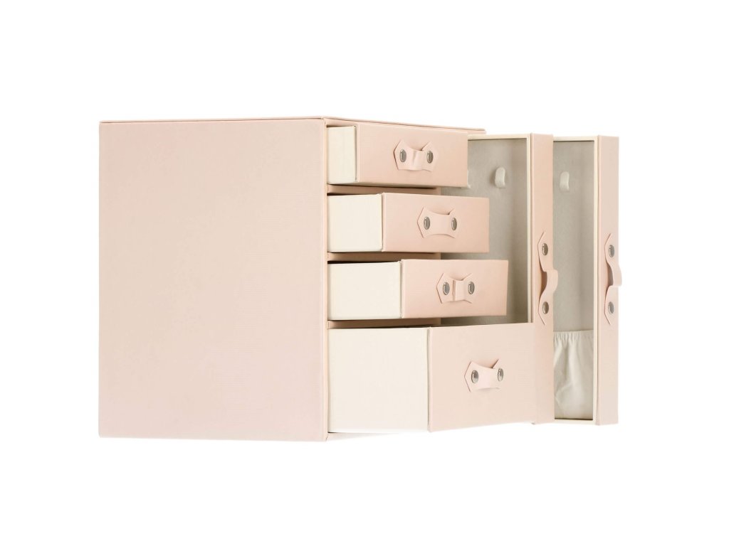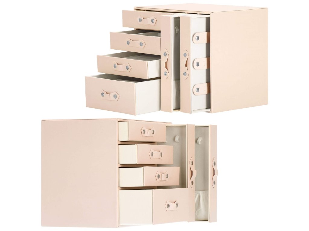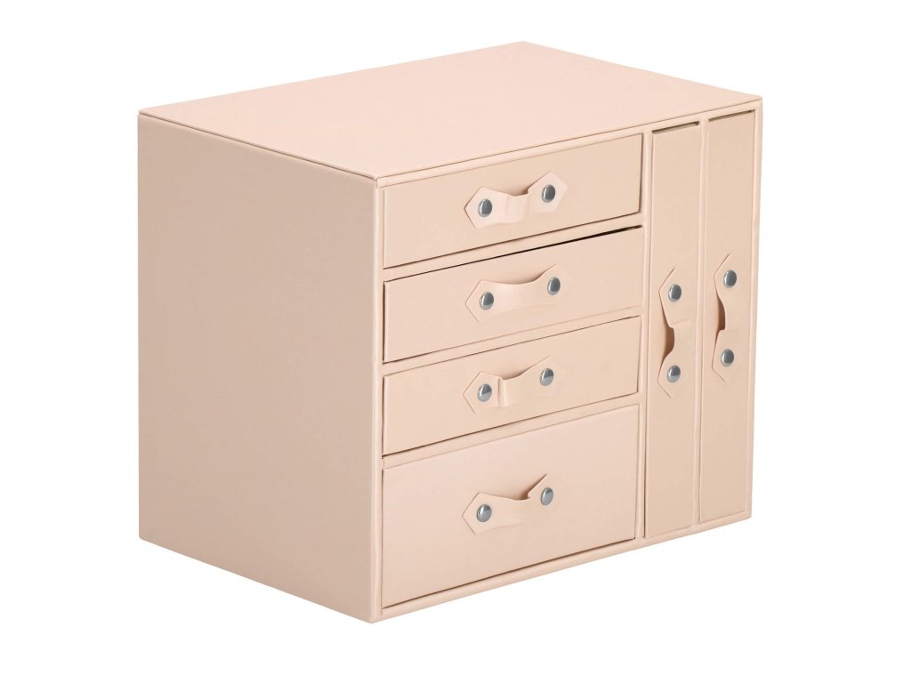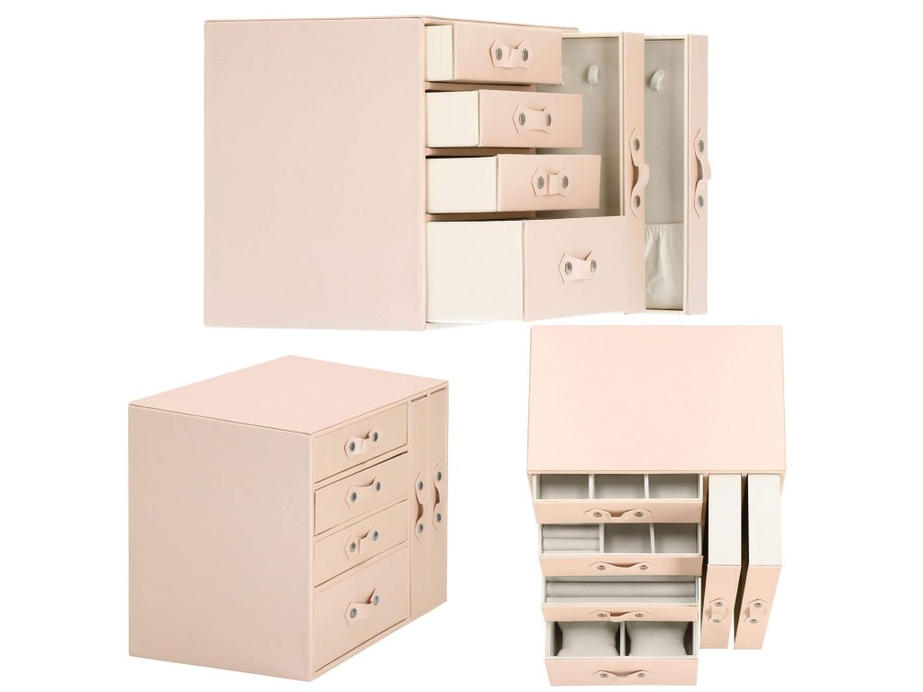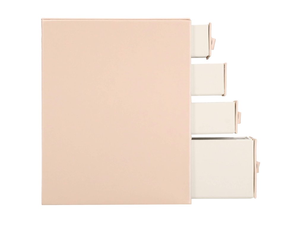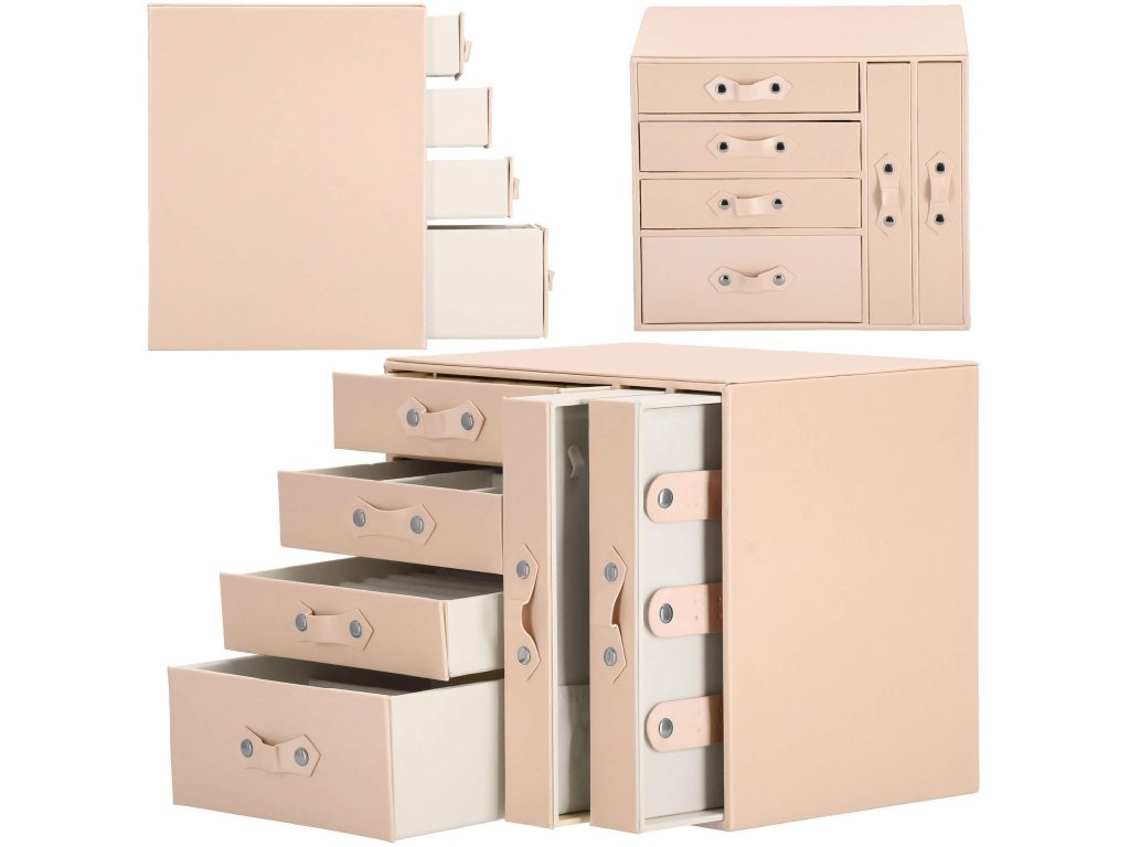 - 1 velika predal: 10 predelkov za prstane / 4 prekati dimenzije: 8 x 4,5 cm