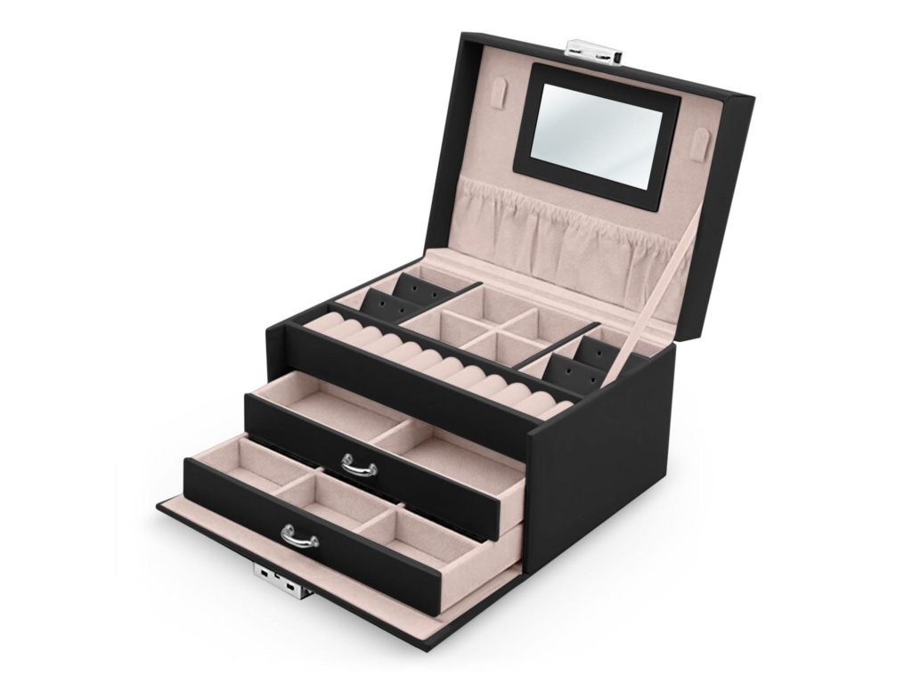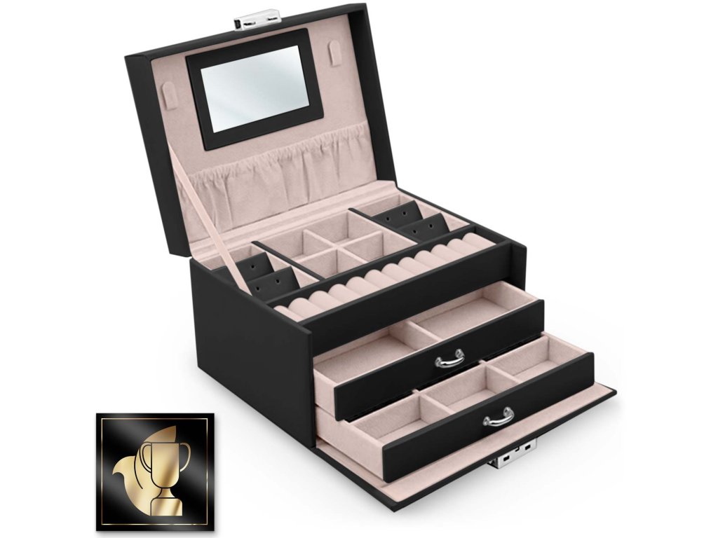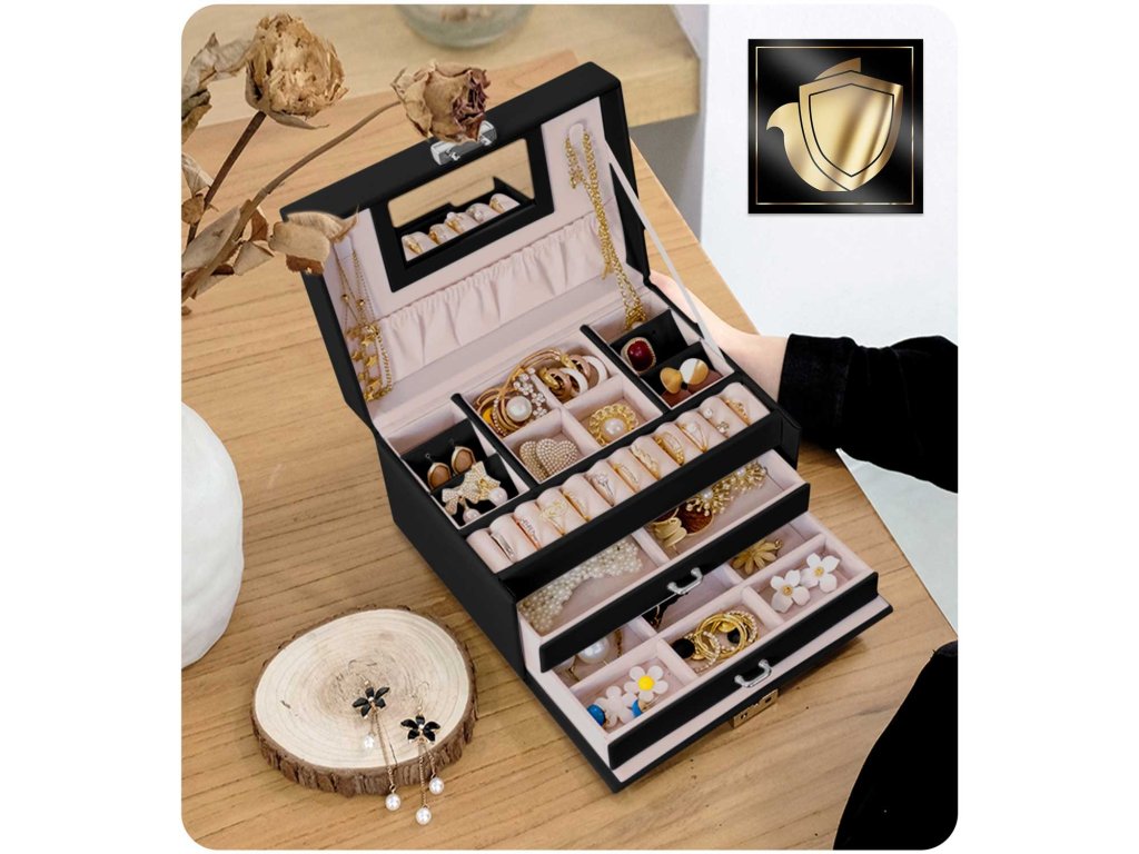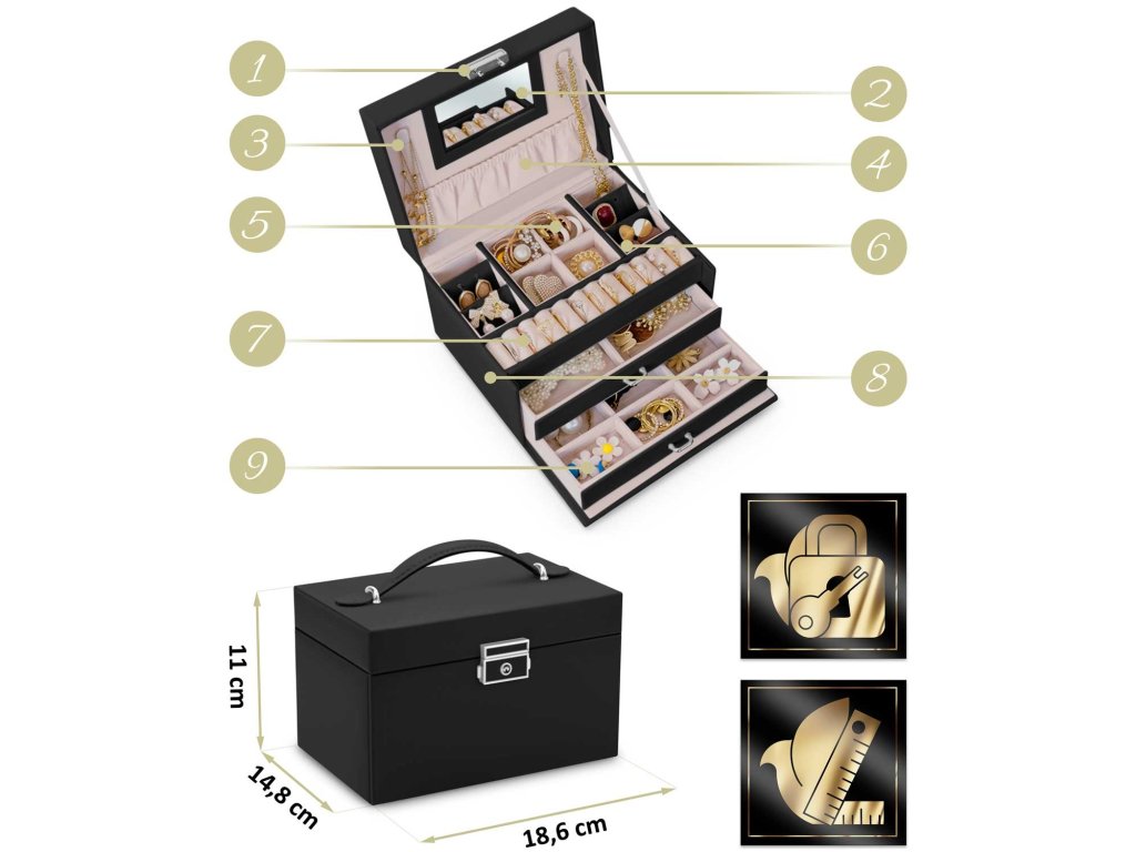 Ta škatla izpolnjuje sanje deklet in potrebe žensk. Je dovolj prostorna, da postane skrinjica s prvimi zakladi deklice in hkrati dovolj elegantna, da vsebuje zbirko nakita odrasle ženske.