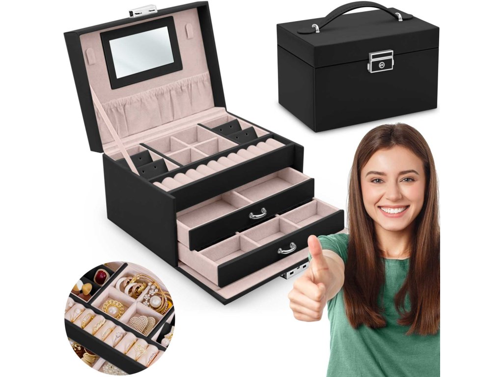 Slog in kakovost izdelave presegata standard tovrstnih izdelkov, ki so na voljo na poljskem trgu. Naša škatla za nakit pritegne širok spekter okusov in je uporabna za vsako damo, ne glede na njeno starost.