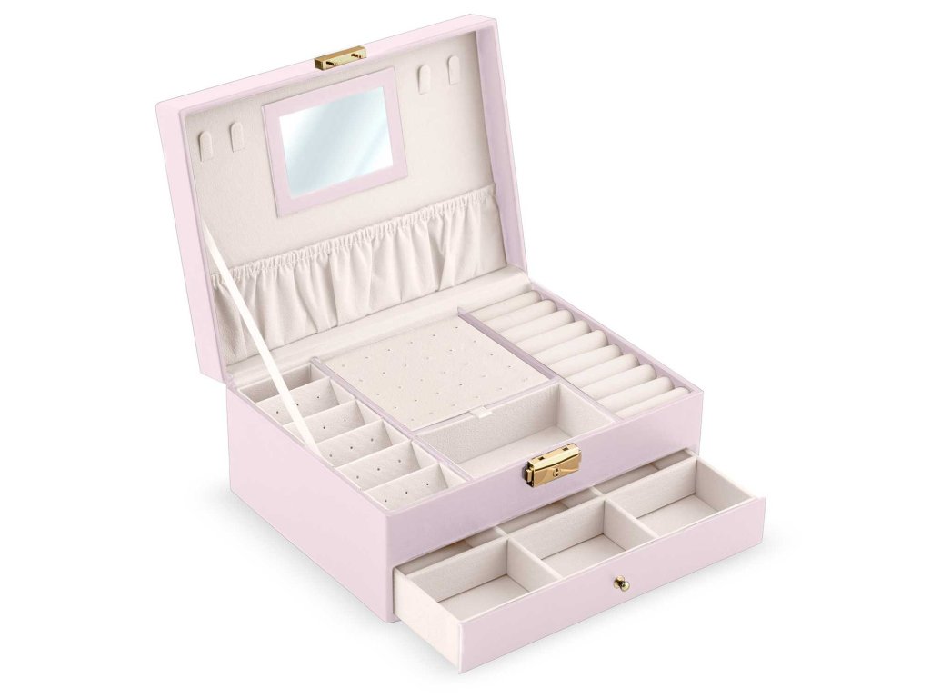 Ta škatla izpolni sanje deklet in potrebe žensk. Dovolj prostorna, da postane prva zakladnica deklice, istočasno pa elegantna kot kolekcija nakita za odraslo žensko.