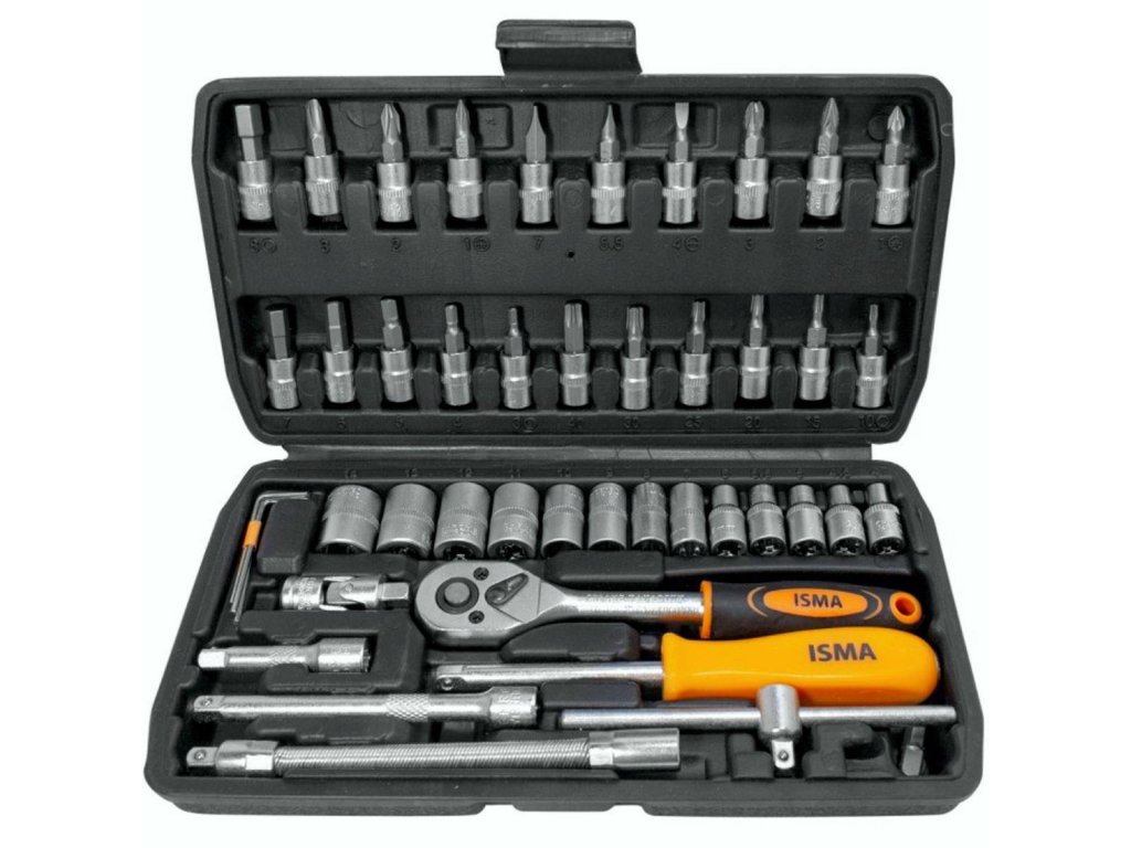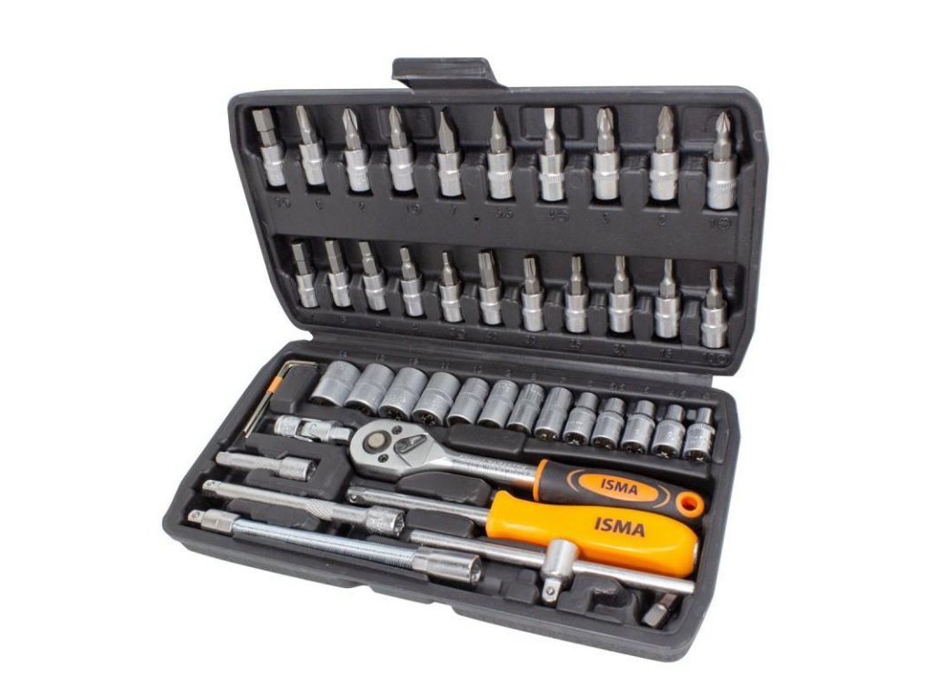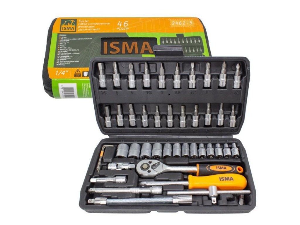 V kompletu je vključena račna z dolgo življenjsko dobo in zaskočno mehanizmom. Komplet vsebuje bogato izbiro nastavljivih glav (v velikostih od 4 do 14 mm) in vijačnih konic (ravnih, križnih, šestkotnih, Torx). Dodatki so podaljški (vključno s fleksibilnim), univerzalni zglob, šestkotni ključi, T-tip ročaj in držalo za bit. Delci so razporejeni v praktičnem kovčku. Komplet je idealen za profesionalno in amatersko uporabo. Profesionalna izdelava in kaljeno krom-vanadijevo jeklo zagotavljata moč in trajnost. Vse velikosti ključev so označene za udobje uporabnika.