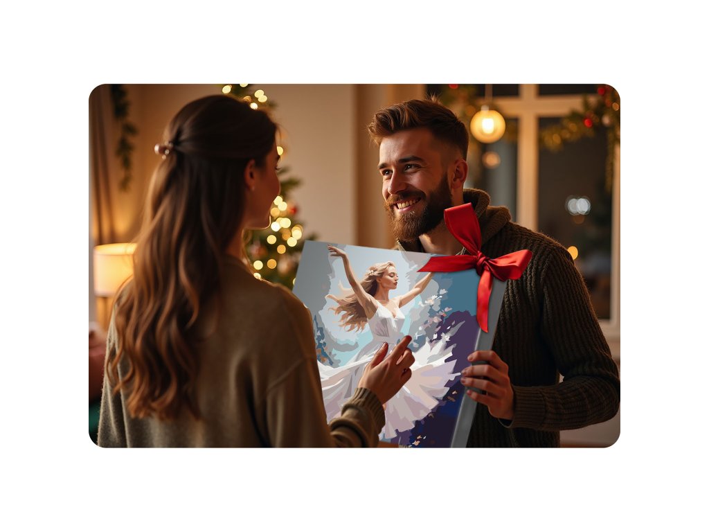 Poslikana slika po številkah je idealno darilo – kot komplet prinaša veselje ustvarjanja, in končana, ročno poslikana slika postane izjemna dekoracija. Je osebno in izvirno darilo, ki kaže angažiranost in povzroči, da se vsak počuti posebno.