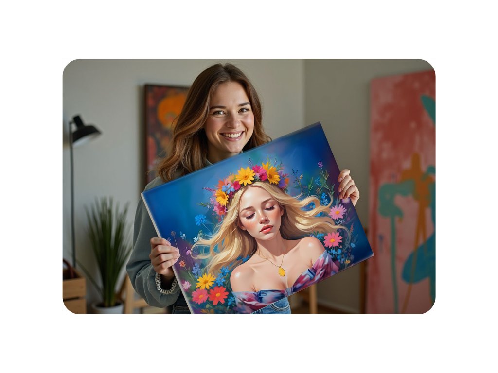 - Kakovostno platno na okvirju – odporno in pripravljeno za slikanje.