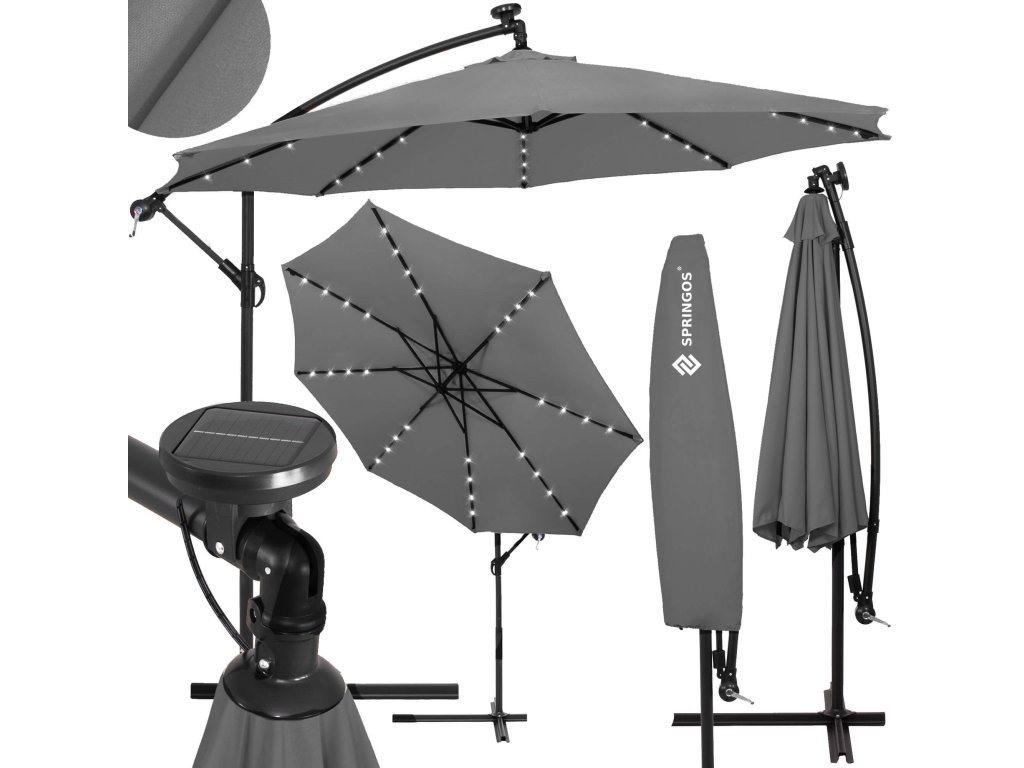 - Solárny panel pripevnený k dáždniku pomocou kábla, ktorý sa nachádza na špičke dáždnika