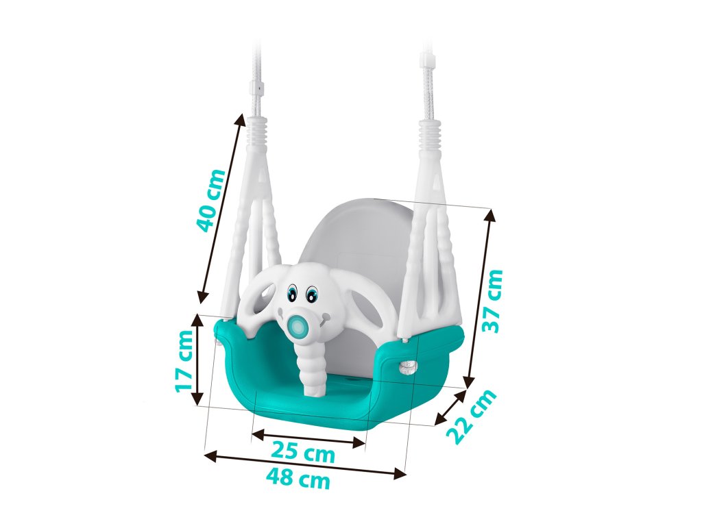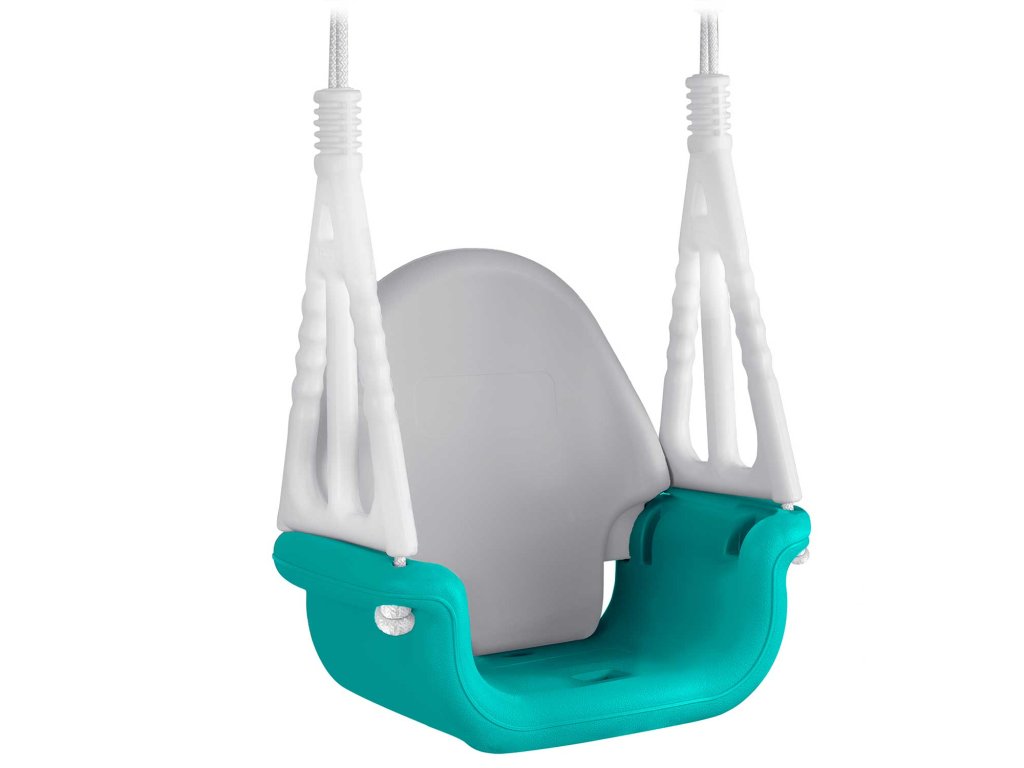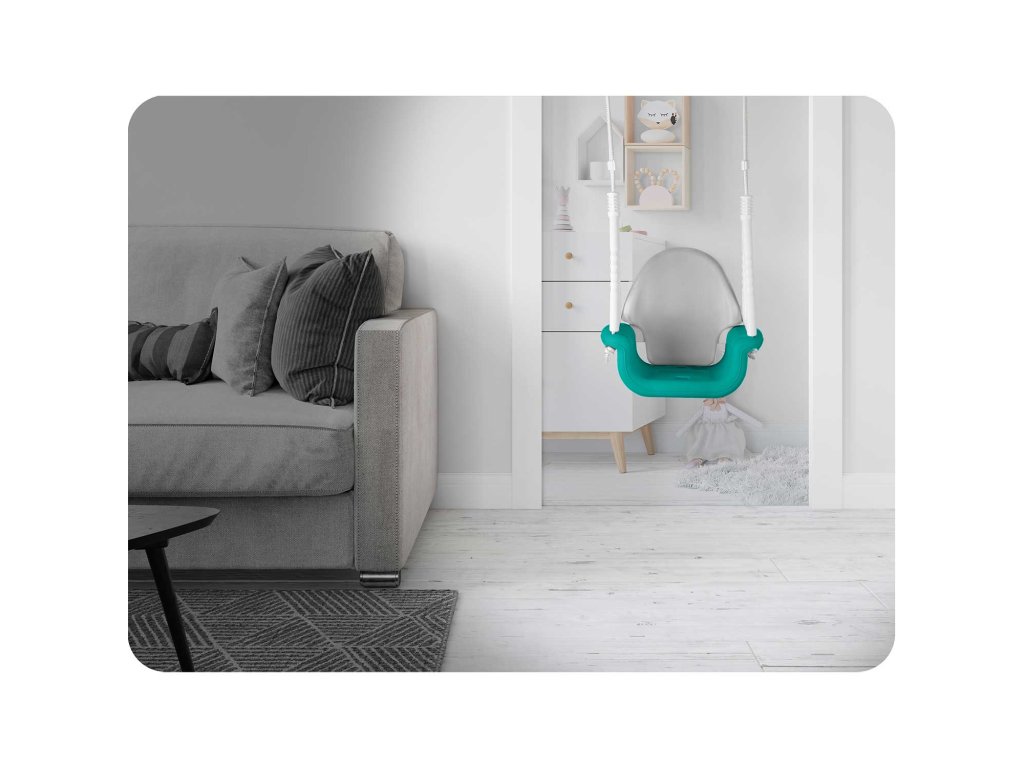 - Močne vrvi z dolžino do 130 cm z možnostjo nastavitve s kovinskimi sponkami, vrvi so dodatno zaščitene s posebnimi plastmi, ki ščitijo otrokove roke pred morebitnim drgnjenjem in povečujejo stabilnost med guganjem.