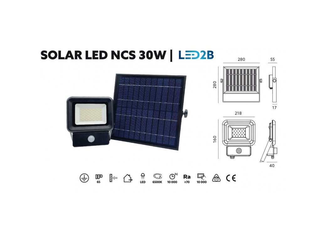 Solarni LED reflektor s senzorjem 30W 6500K KFLNCS30ZB