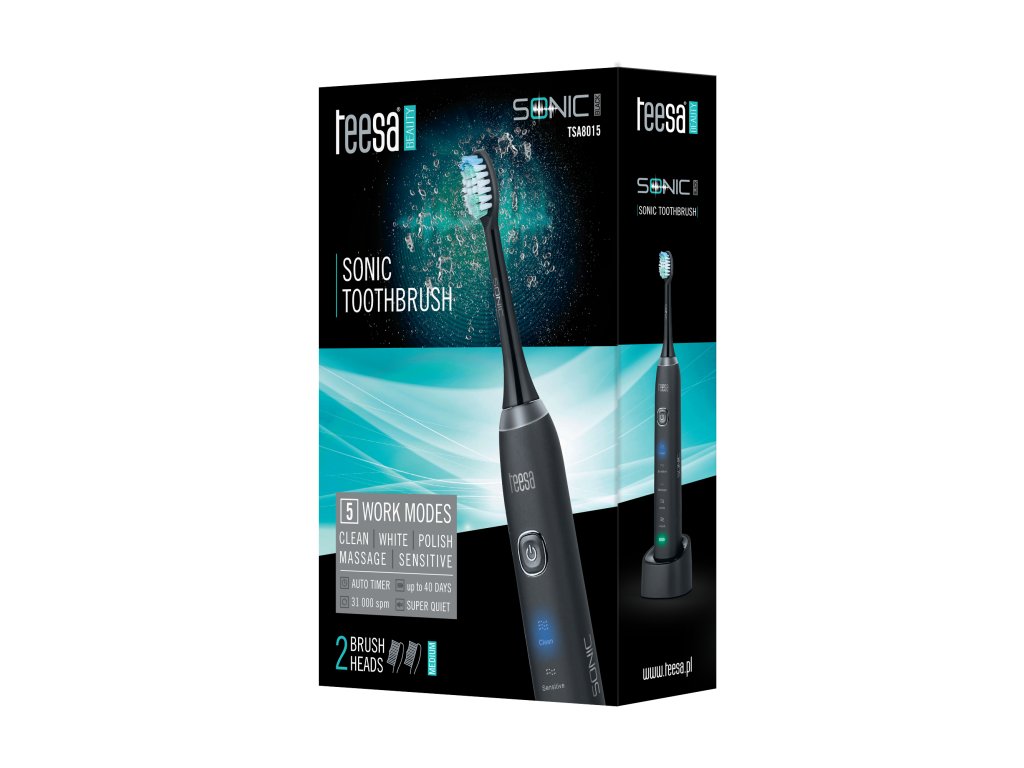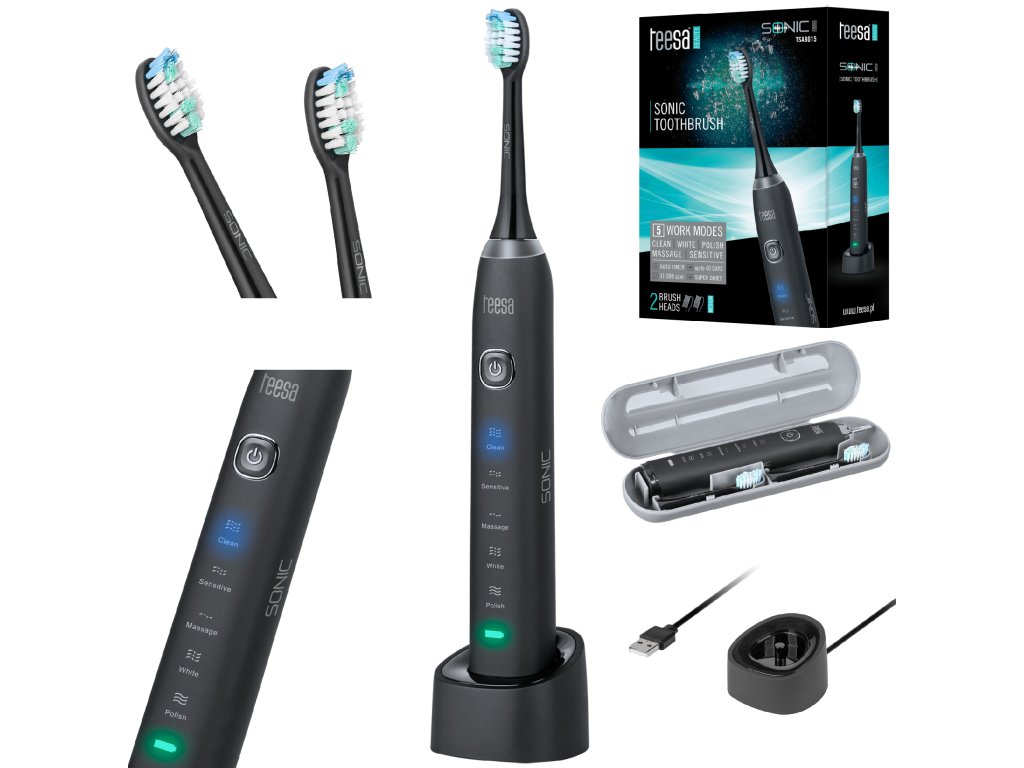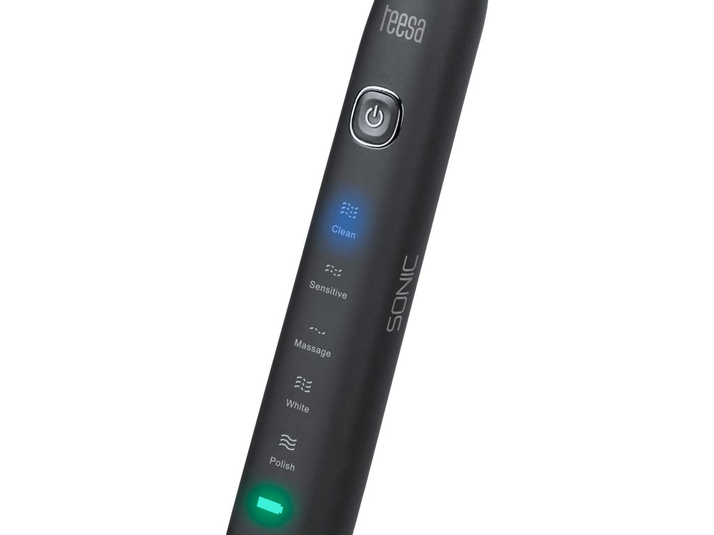 Prepričajte se sami o učinkovitosti zvočne tehnologije! Zobna ščetka Teesa SONIC Black izvaja večkrat več gibov na minuto v primerjavi z rotacijsko električno zobno ščetko. To pomeni, da mnogo temeljiteje odstranjuje zobne obloge in čisti medzobne prostore.
