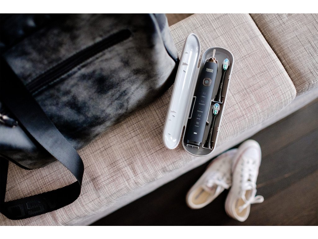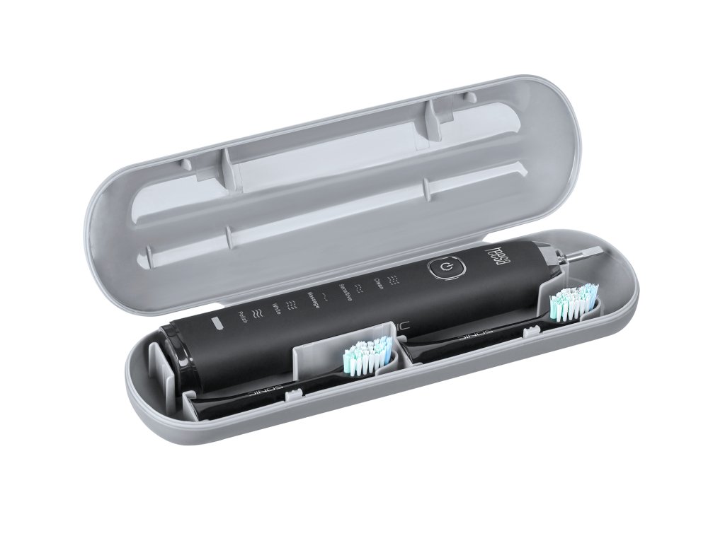 Ne vzamete sonične zobne ščetke na potovanje, ker se bojite, da bi se naprava poškropila v kovčku To ni več težava! Skupaj z zobno ščetko SONIC Black prejmete potovalni etui, da boste lahko zobno ščetko vedno vzeli s seboj in skrbeli za svoj nasmeh, kjerkoli boste želeli.