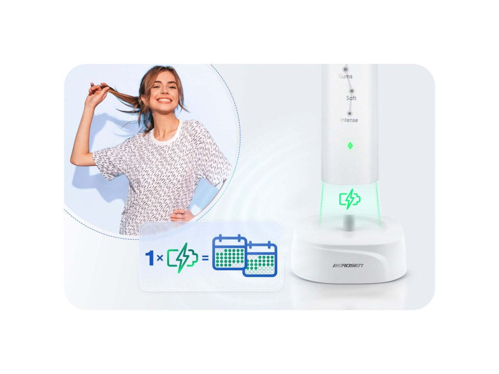 - Napredna sonična tehnologija in trpežna baterija omogočata tedne delovanja z enim polnjenjem, zagotavljajo udobje in zanesljivost vsak dan.