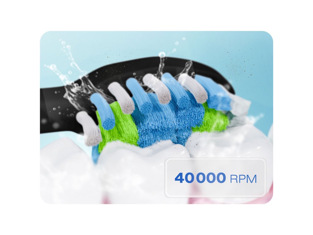 - 40.000 pulznih gibov na minuto – hitro odstrani zobne obloge in usedline.