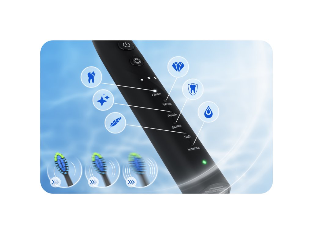- SOFT – Nežen način: popoln za osebe z občutljivimi zobmi in dlesnimi, zagotavlja nežno čiščenje.