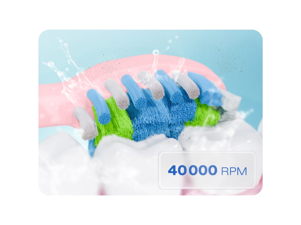 - 40 000 pulzacij na minuto – hitro odstranijo zobne obloge in usedline.